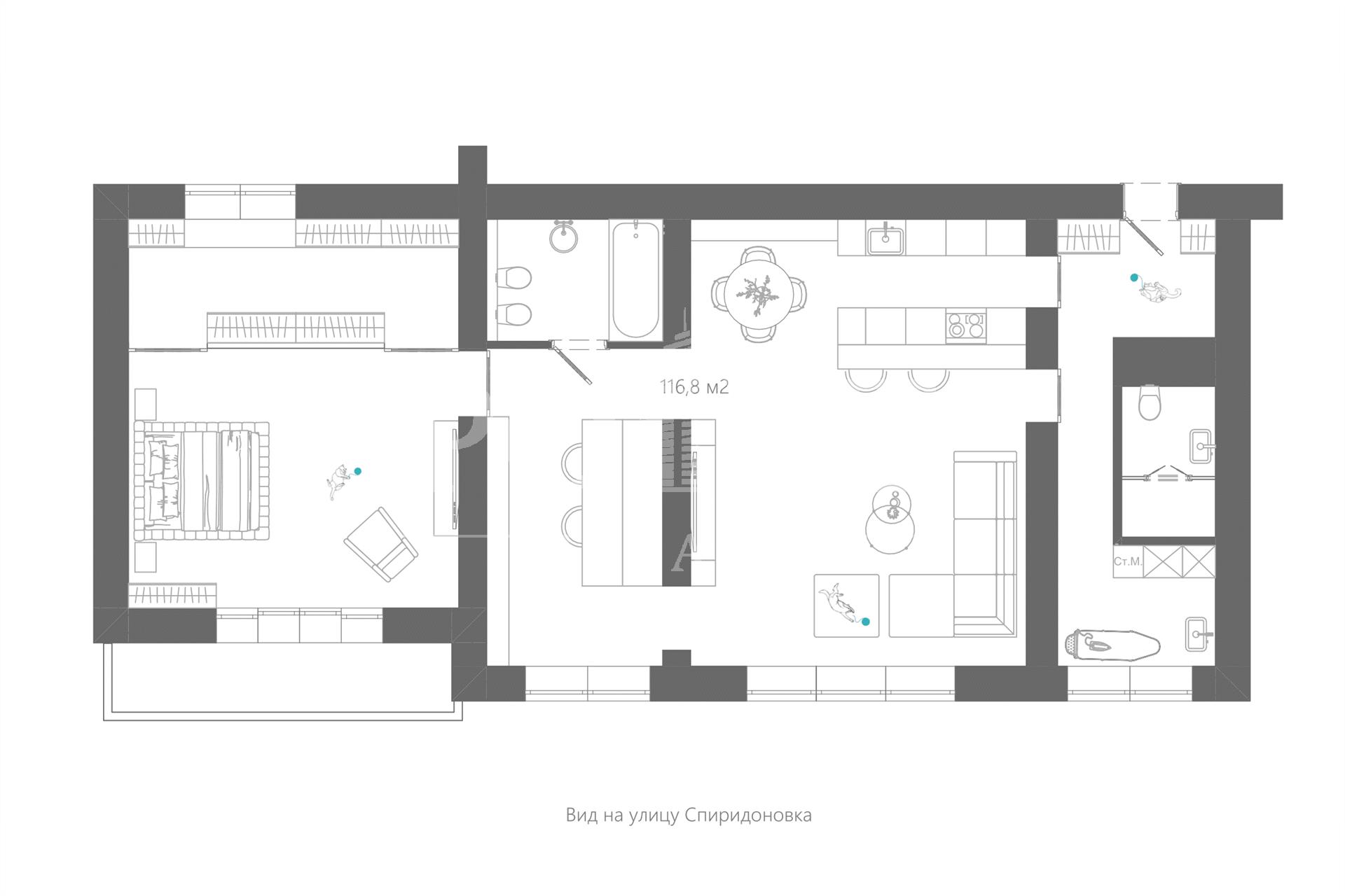 2-х комнатная квартира, 116.8 м² В жилом доме «Спиридоновка улица, 12»