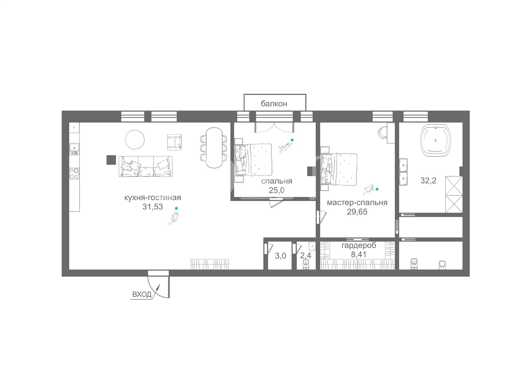 | Кол-во санузлов | 3 санузла |