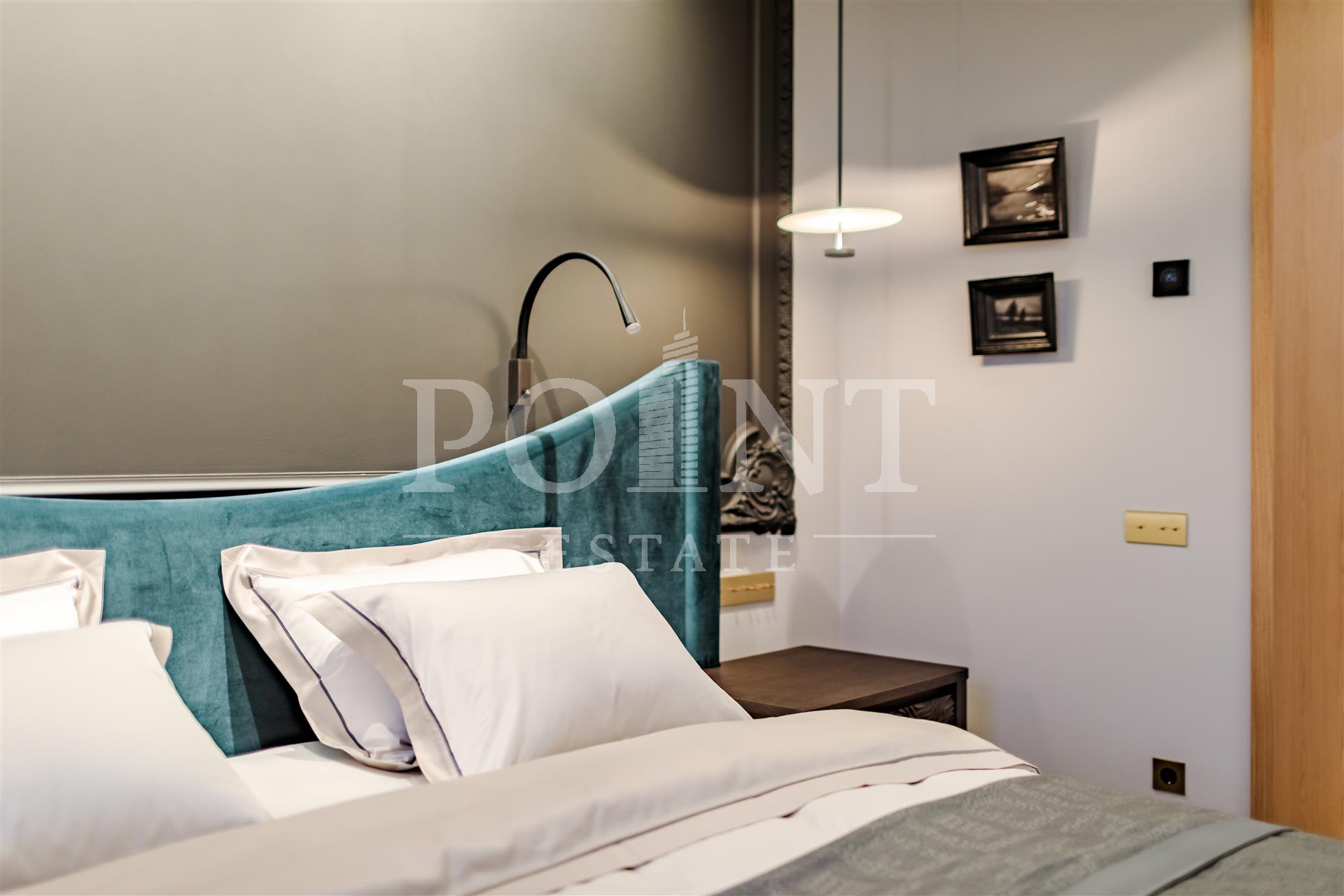 На продажу предлагаются великолепные апартаменты с новым премиальным ремонтом, площадью 77,4 кв.м., в De Luxe квартале "Театральный дом". Планировка: кухня-гостиная, спальня с гардеробной и санузлом, гардеробная, гостевой санузел, прихожая. Высота потолков - 4 м. Окна ориентированы на восток, открывается прекрасный вид на сквер Гоголя. Одно машиноместо (21, кв.м.) на -2 этаже, а также подсобное помещение за дополнительную плату. Квартира полностью меблирована (мебель Edra), эксклюзивная система хранения каменный кухонный гарнитур. Посудомоечная машина, духовой шкаф, индукционная варочная поверхность, стиральная и сушильная машина премиум бренда V-ZUG, эксклюзивный заказной кинотеатр. Установлена система "Умный Дом" с электроприводами штор и управлением светом. Произведены работы по замене системы отопления, установлена система кондиционирования канального типа, а также приточно-вытяжная система с увлажнителем.