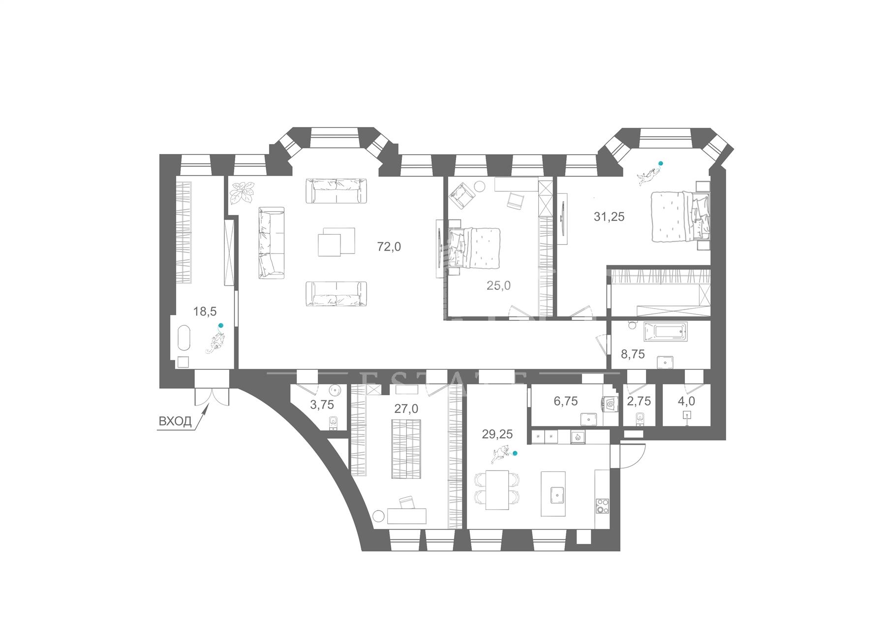 4 комнаты