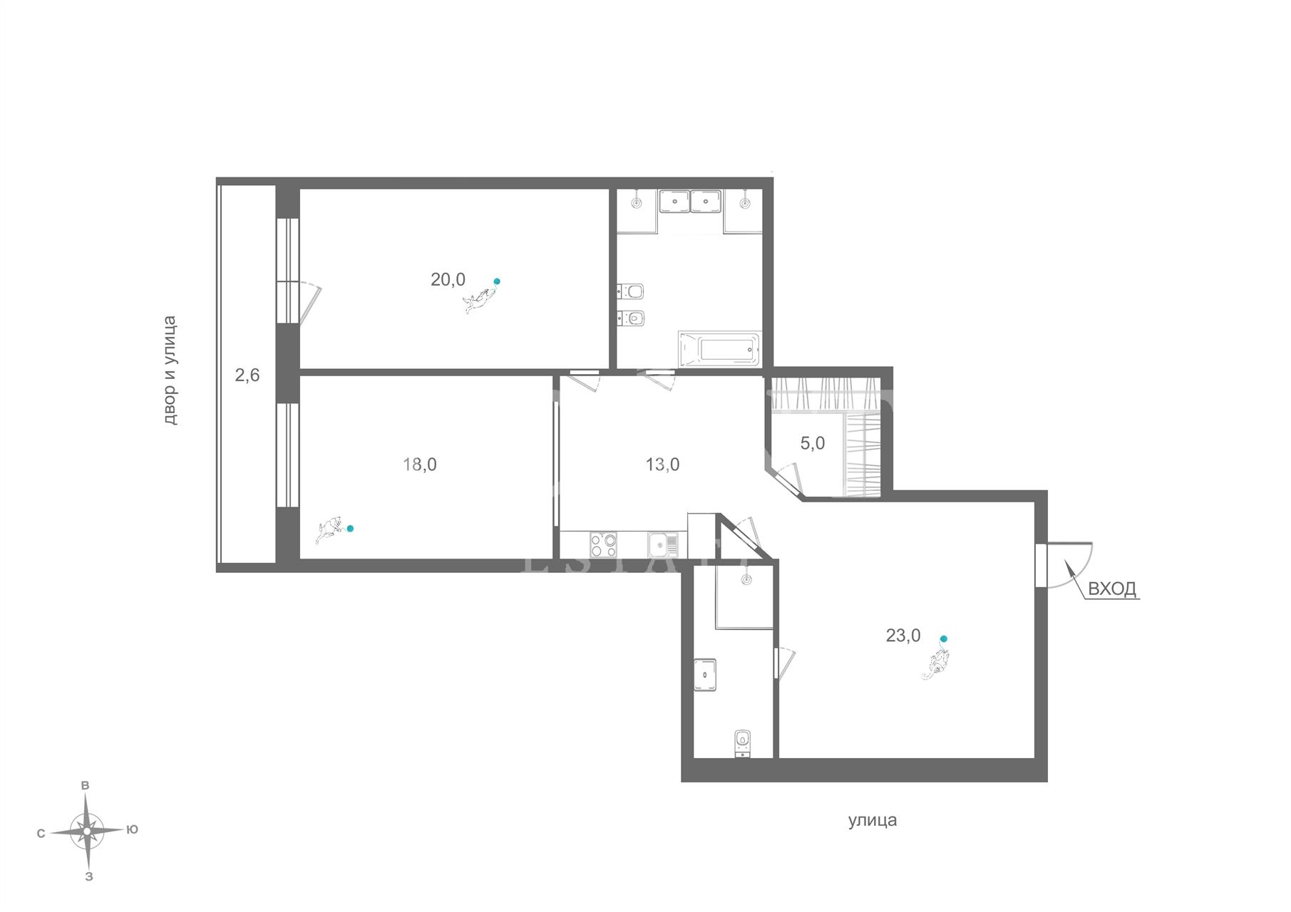 | Количество комнат | 3 комнаты |