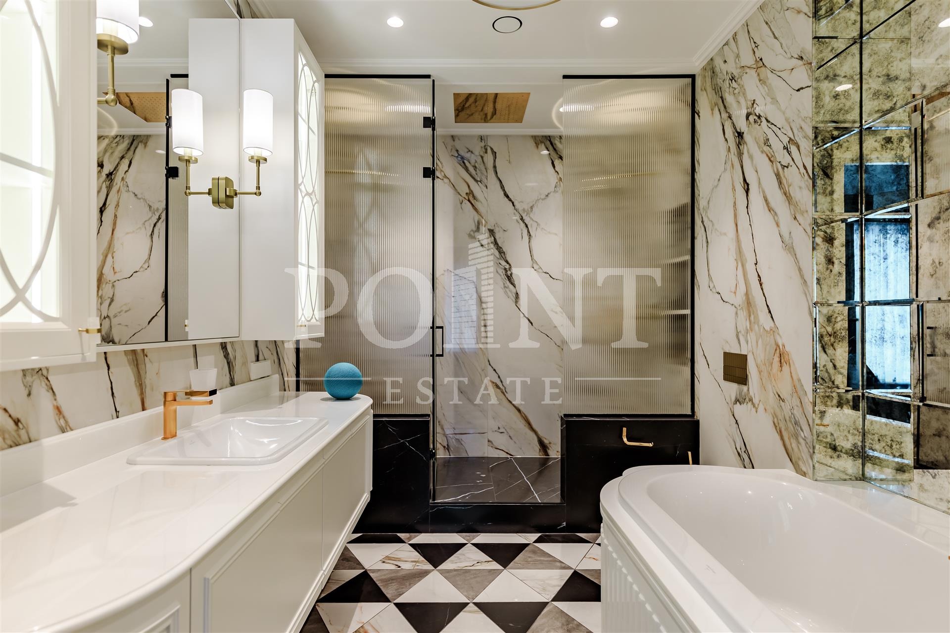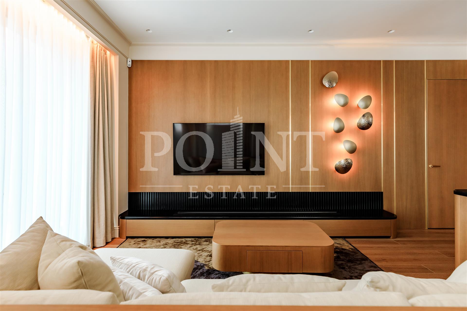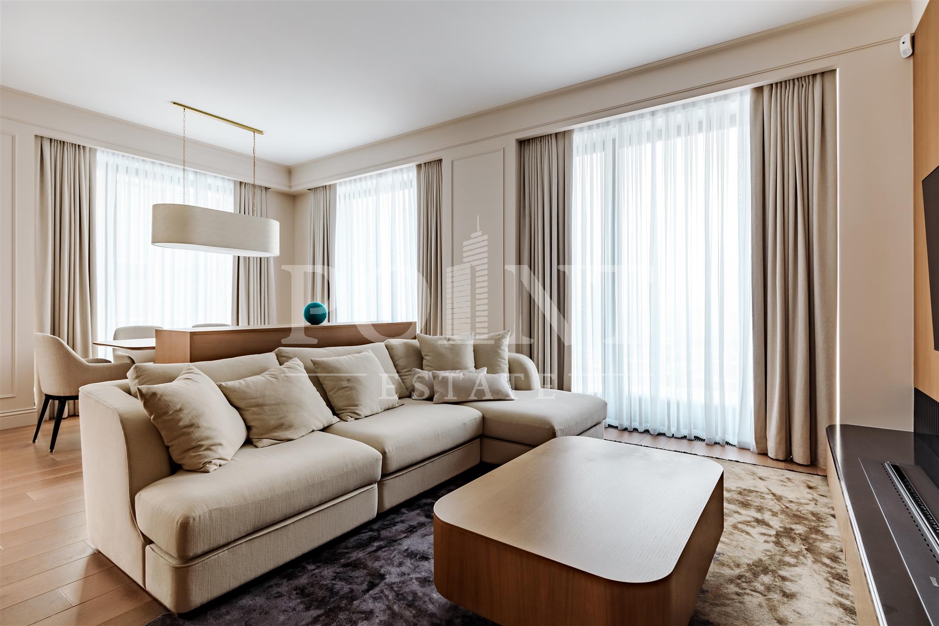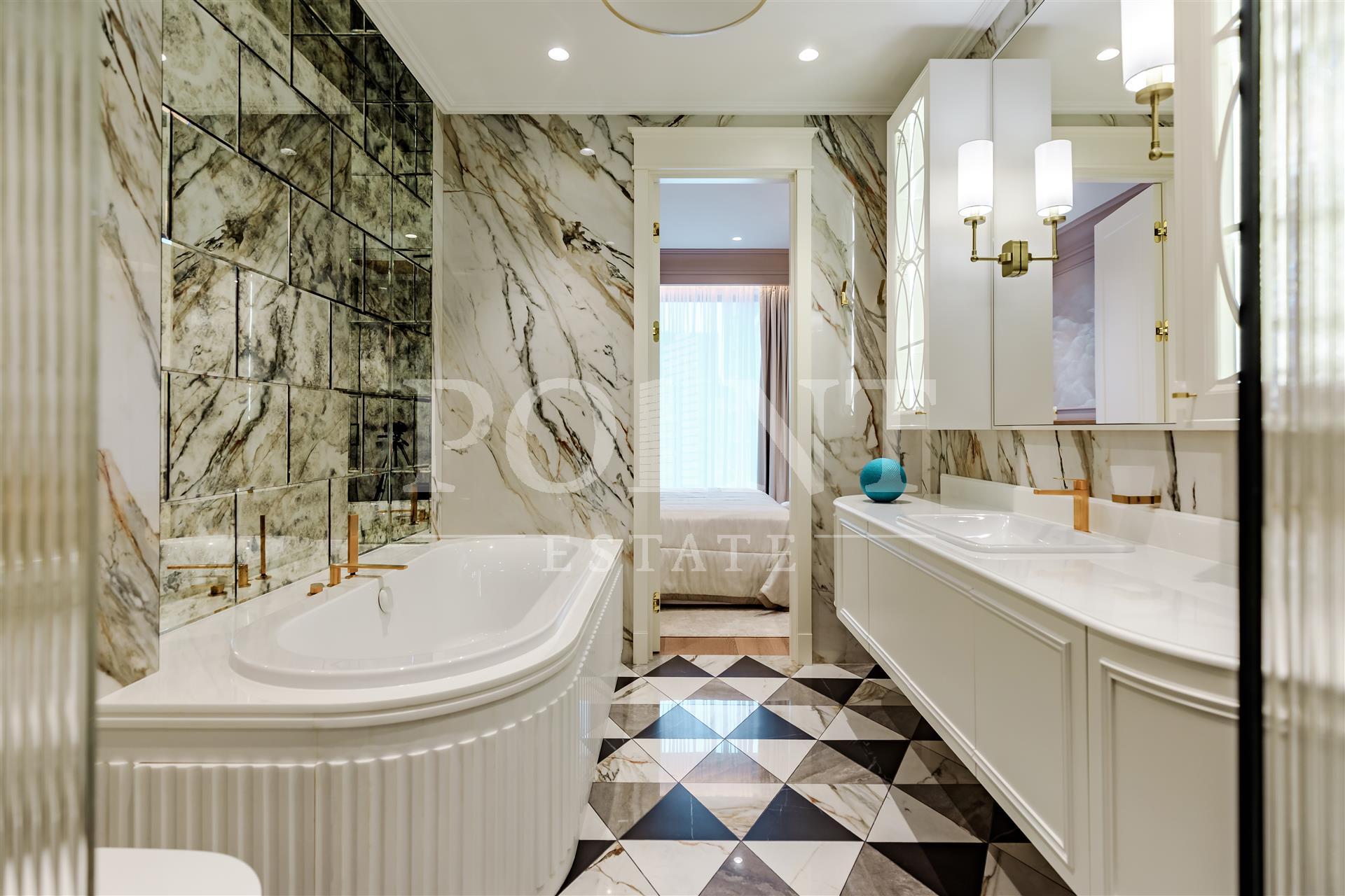Четырехкомнатная квартира, площадью 138,2 кв.м., в жилом комплексе Prime Park. Планировка: кухня-гостиная, спальня с санузлом, спальня с гардеробной и санузлом, кабинет, гостевой санузел, прихожая. Для отделки использованы высококачественные материалы: на полу в жилых зонах уложена инженерная доска, в санузлах премиальный итальянский керамогранит, а в прихожей итальянская плитка. Стены декорированы уникальными ручными обоями ведущих европейских брендов Fresq, GEO.44, Arte, потолки представляют собой изящные подвесные конструкции с лепниной ручной работы. Интерьер в санузлах дополняют предметы сантехники от известных производителей Villeroy & Boch (Германия), Giulnig (Италия), Tres (Испания). Вся корпусная мебель, шкафы, стеновые панели и двери изготовлены индивидуально под заказ специально для данной квартиры. Для поддержания идеального микроклимата установлен современный климатический комплекс с фанкойлами производства японской компании DAIKON.
