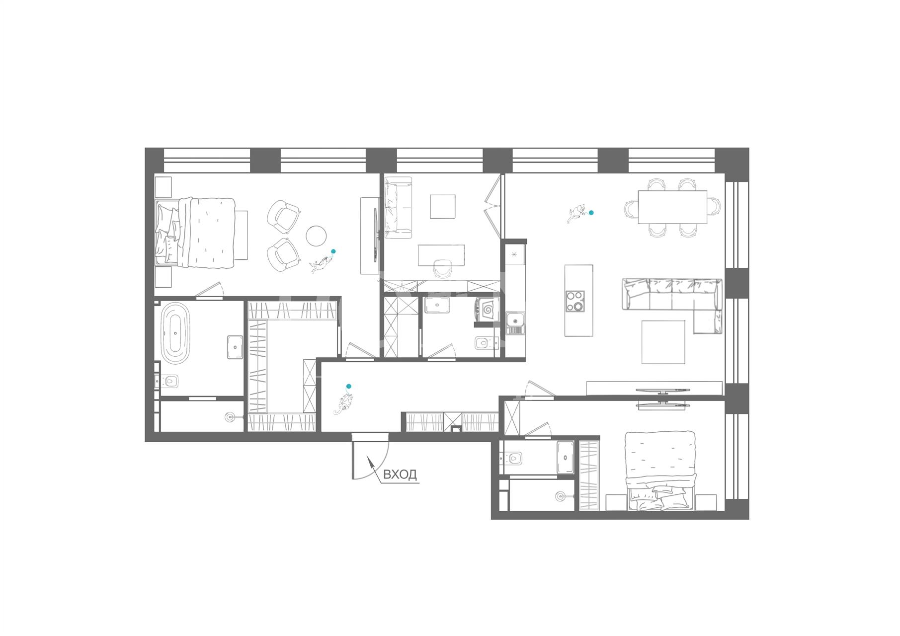 | Кол-во санузлов | 3 санузла |