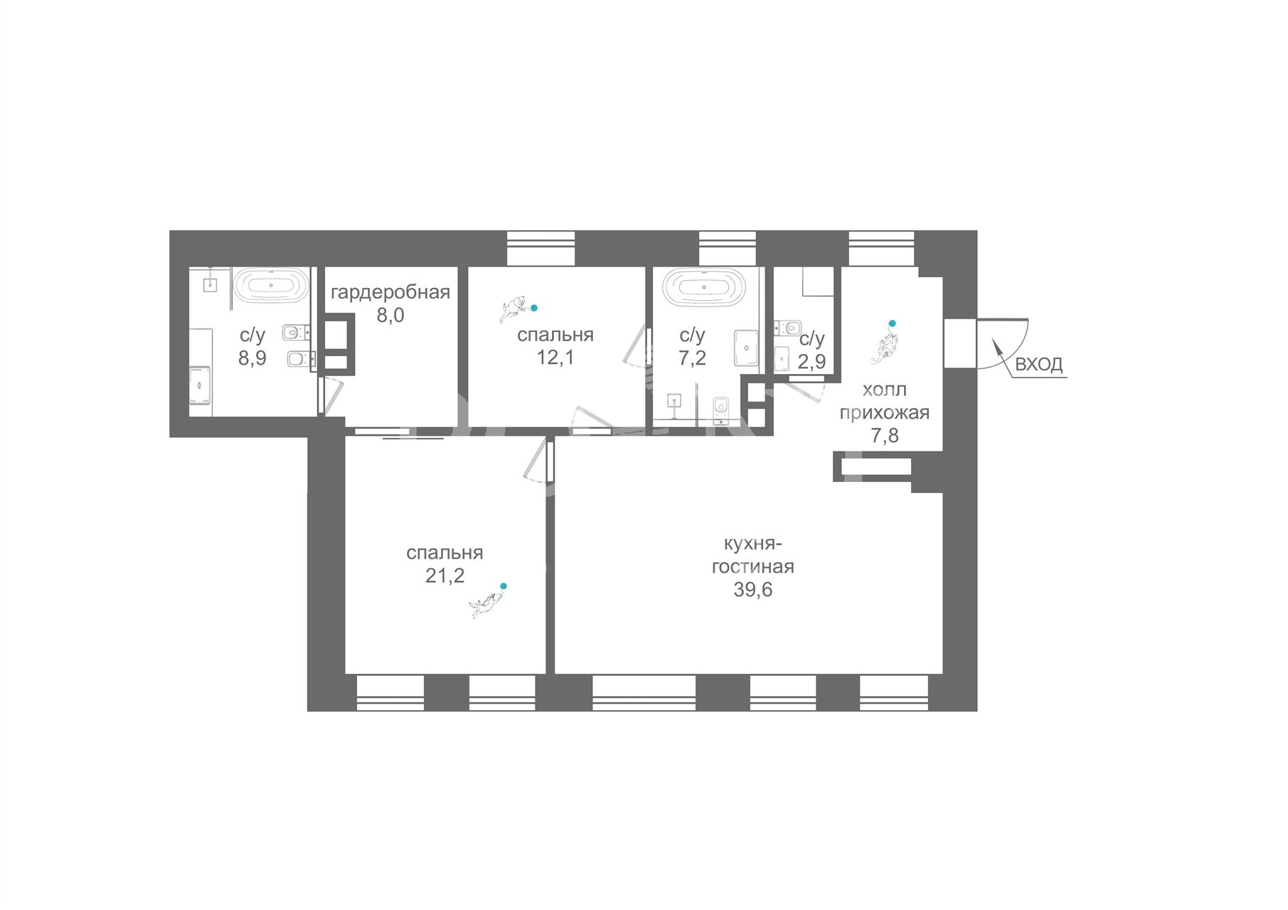| Кол-во санузлов | 1 санузел |