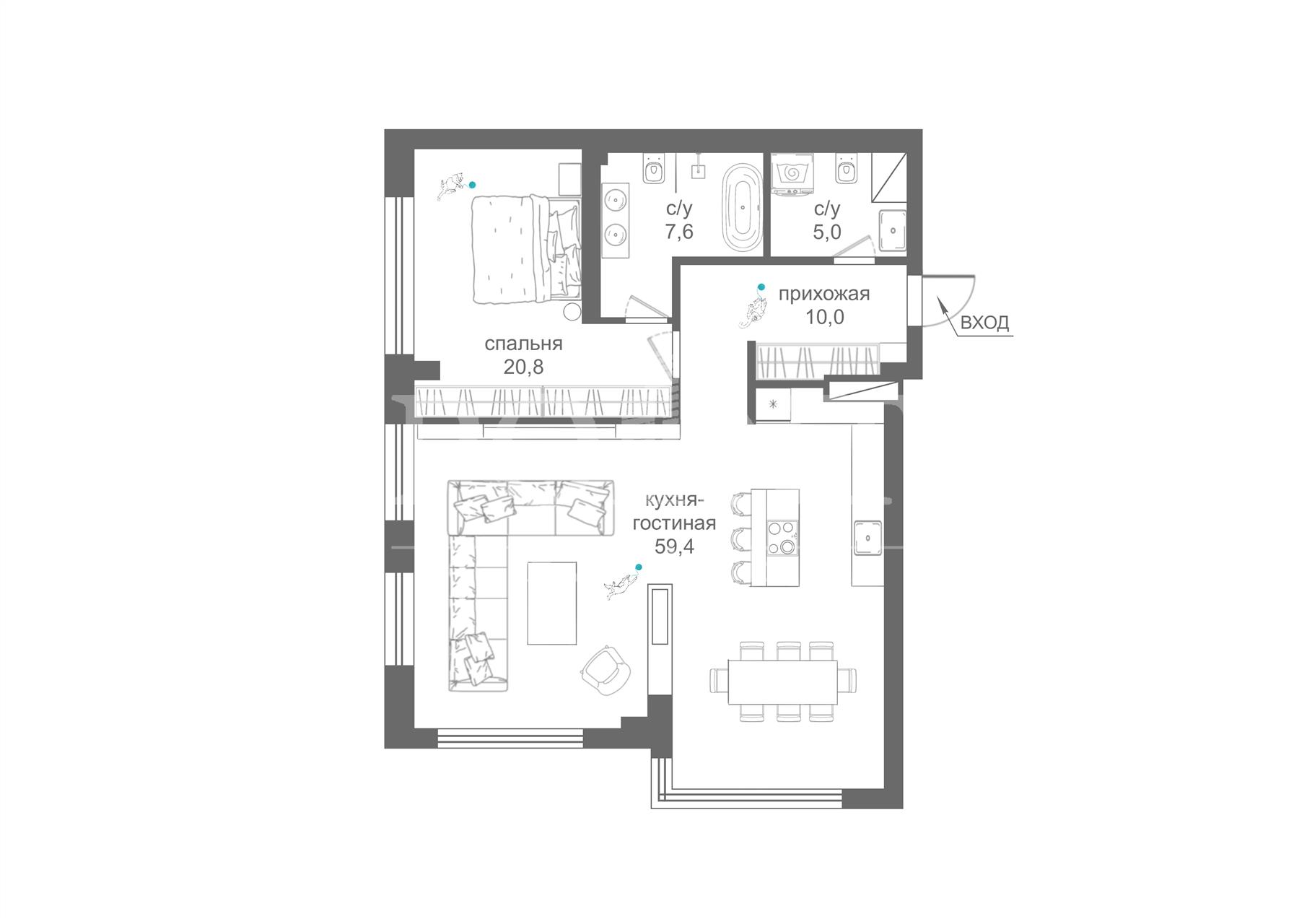 | Кол-во санузлов | 2 санузла |