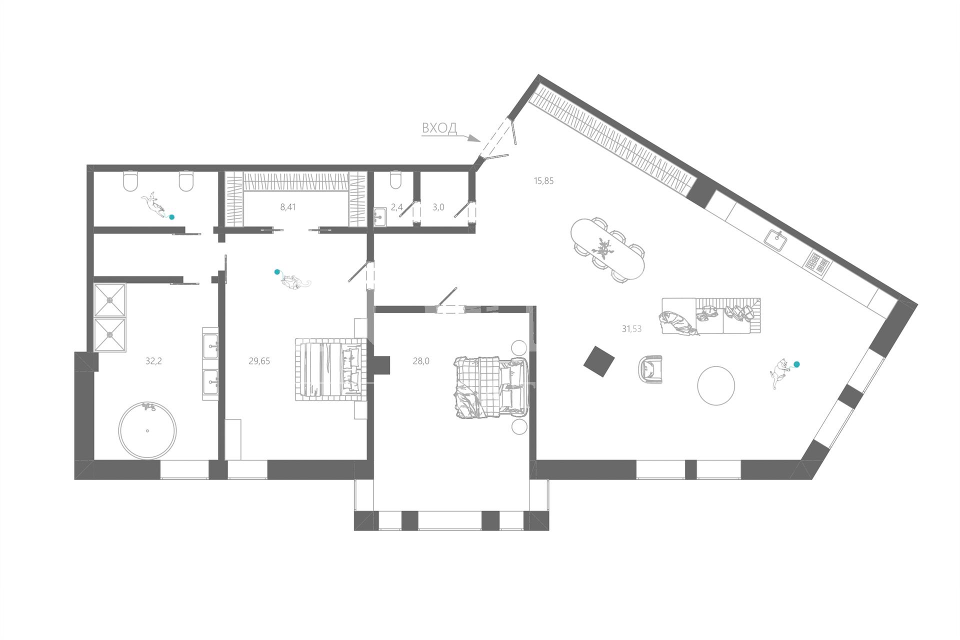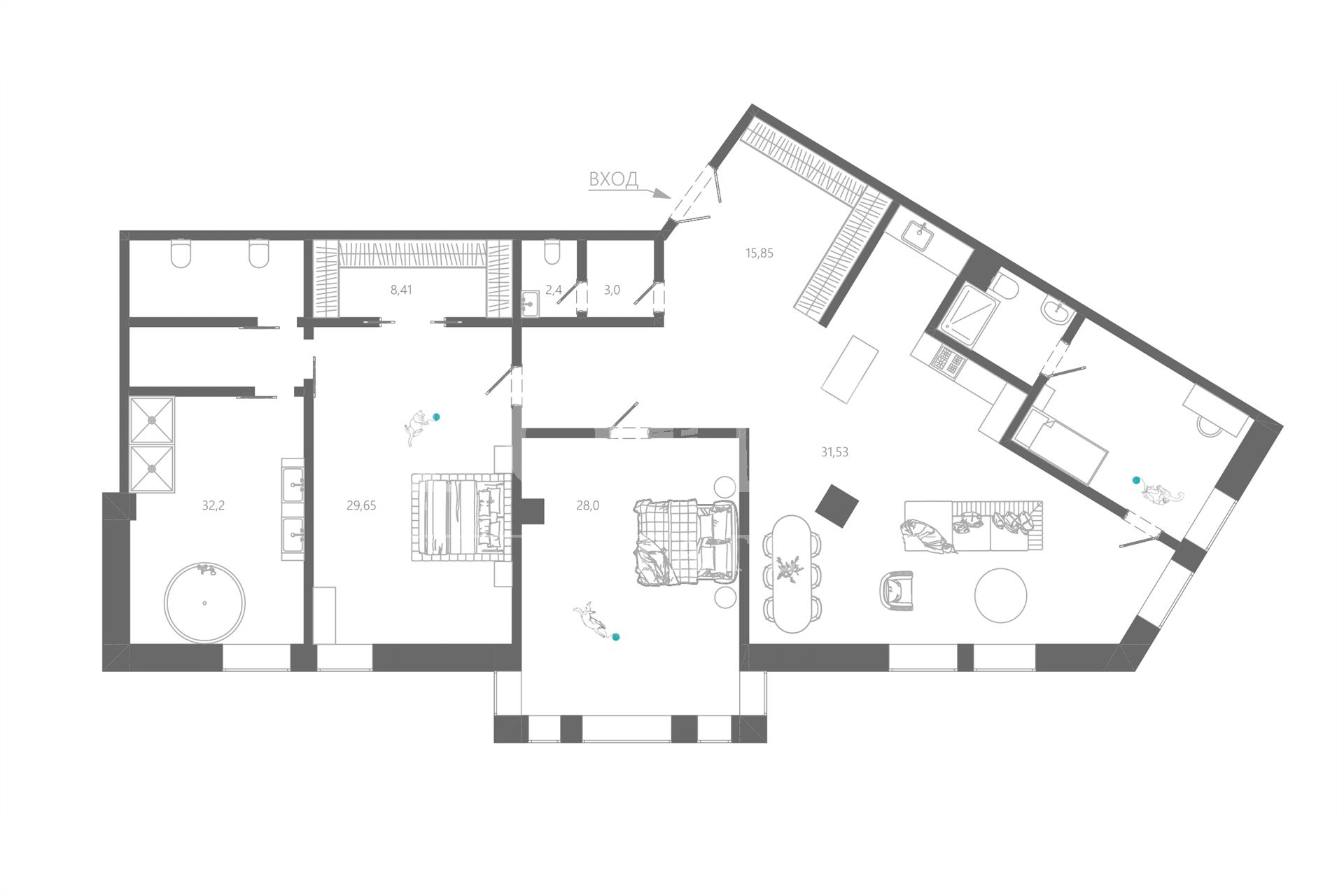 | Кол-во санузлов | 3 санузла |