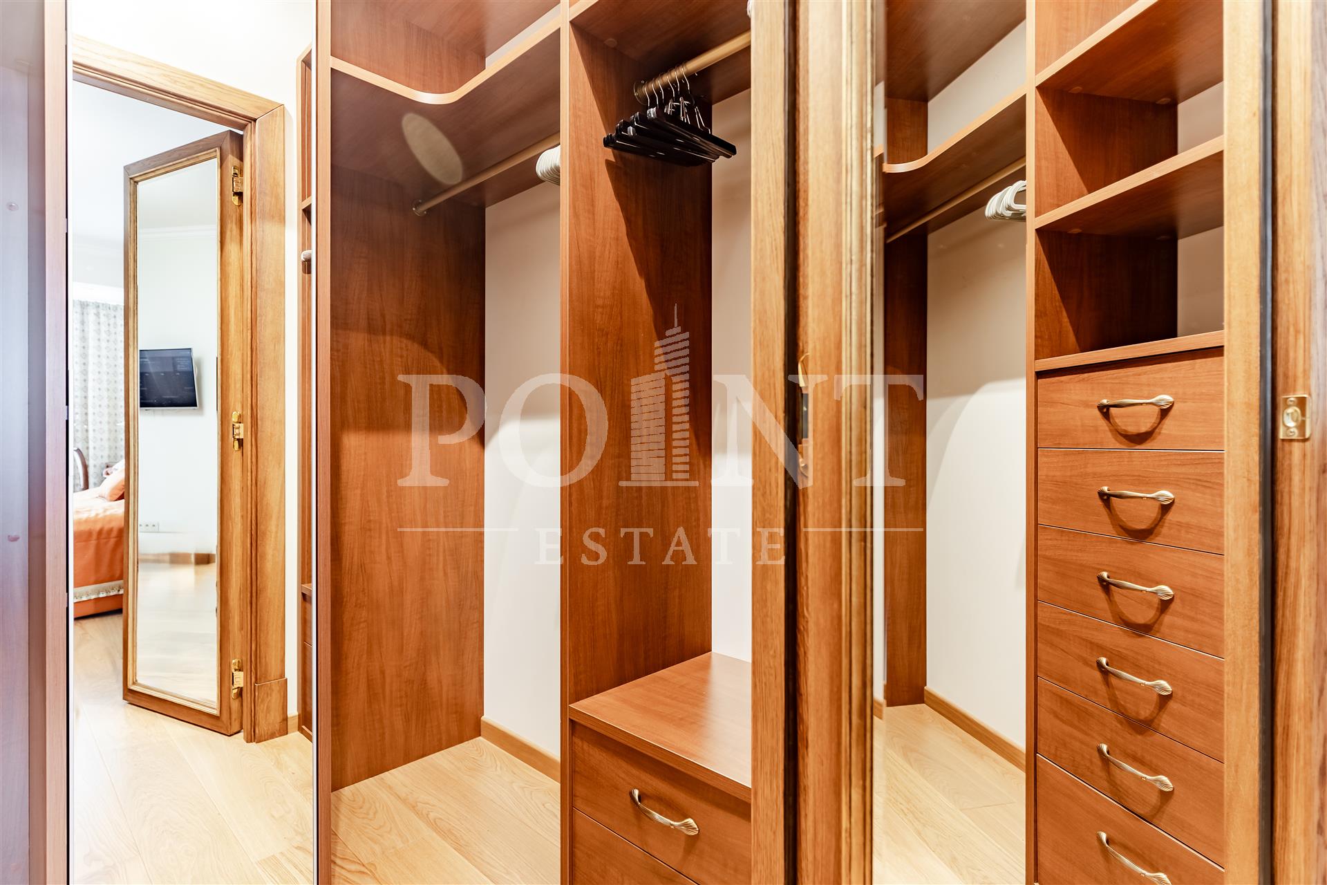 спальня, кухня-гостиная, совмещенный санузел, лоджия, прихожая, спальня с гардеробной