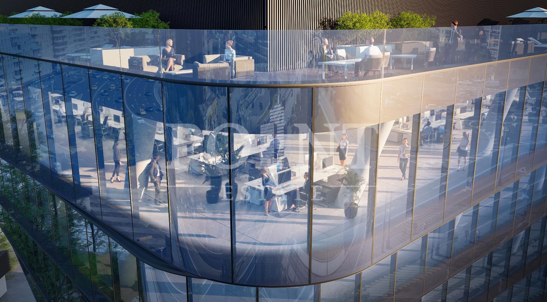 Видовой офис 196,4 кв.м с панорамным остеклением на две стороны света и собственной террасой 91,0 кв.м на крыше. Прямоугольная форма помещения и немногочисленные несущие конструкции позволяют максимально эффективно зонировать пространство. Панорамное остекление обеспечивает яркое естественное освещение в дневное время и динамичный вид на город в вечернее. Наличие мокрой точки дает возможность обустроить в офисе кухню и дополнительные санузлы. Собственную террасу можно использовать в качестве воркаут-зоны или пространства для работы и отдыха на открытом воздухе. В деловом центре имеется 55 машино-мест на подземной двухэтажной охраняемой парковке, в том числе 10 гостевых. В наличии имеются расширенные парковочные места разных габаритов. На первых этажах организована зона ритейла: ресторан, столовая для сотрудников, шоу-румы, магазины и тд. Благодаря удобному расположению TWIST прямо на выходе со станции метро «Савёловская» и в 30 метрах от ТТК, гостевой парковке и удобной зоне дроп-офф посетителям клиентских офисов не составит труда добраться сюда как на общественном транспорте, так и на автомобиле. Для гостей резидентов специально создана инновационная безбарьерная система доступа.