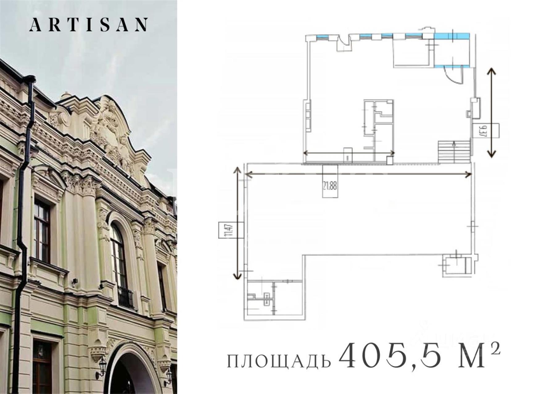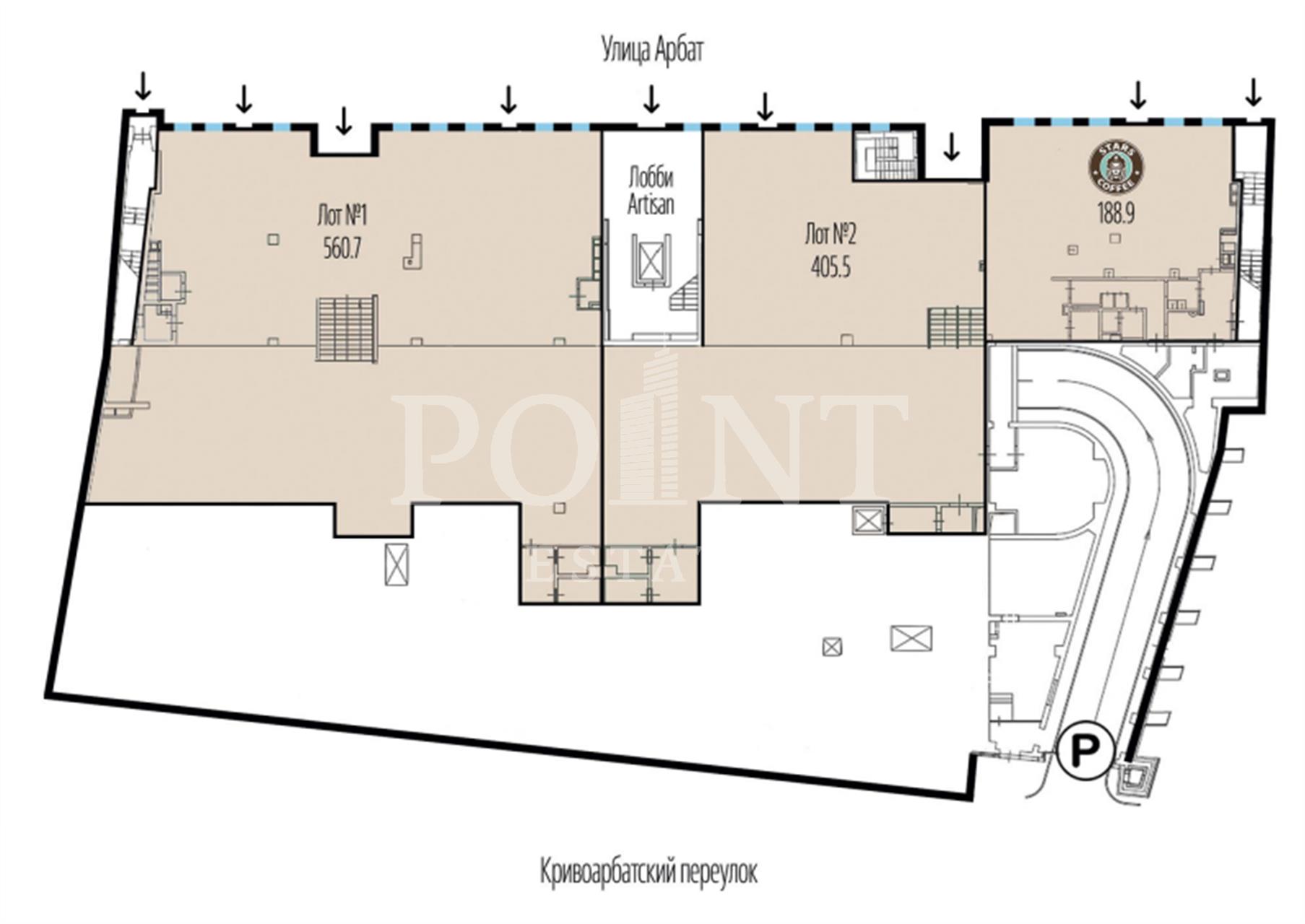 В продажу предлагается помещение свободного назначения в составе клубного дома Artisan на первой линии улицы Арбат - самой известной пешеходной улице Москвы. Помещение площадью 405,5 кв.м., имеет отдельный вход со стороны улицы. Помещение без отделки, открытая планировка. В блоке выведены свои мокрые точки. Высота потолков варьируется, в местах достигает почти 5 метров. Электрическая мощность: 77 кВт. Подведены центральная система кондиционирования Mitsubishi Heavy, приточно-вытяжная система вентиляции. Возможно размещение вывески на фасаде. Пешеходный трафик очень плотный - 2211 чел/час в будни и 5432 чел/час в выходные. Он формируются за счет близости метро Арбатская и Смоленская, а также МИДа, Смоленского пассажа, Нового Арбата, Lotte Plaza и тд.