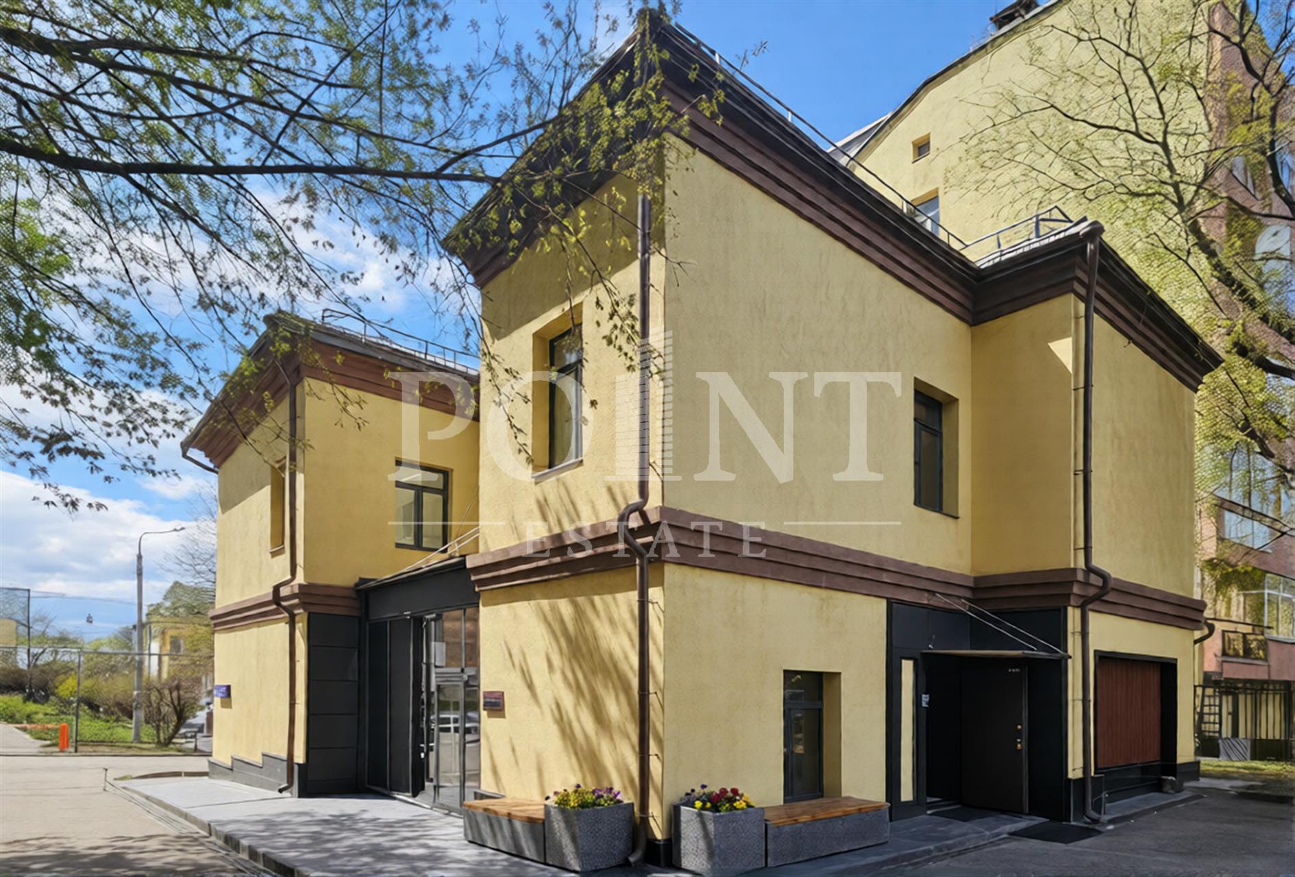 Трехэтажный особняк с цоколем в Тверском районе. В 2019 году был выполнен качественный ремонт с заменой всех коммуникаций. С 1 по 3 этажи расположены кабинеты, переговорные, комнаты отдыха, ресепшен и кухня. В цоколе организована зона отдыха с бассейном и сауной. В помещениях установлена вся необходимая мебель, высота потолков 3 метра, электрическая мощность составляет 95 кВт. Со стороны двора предусмотрена наземная парковка на 3 места. Вдоль дороги находится платный городской паркинг на 10 машин. Особняк подходит для размещения представительства компании или офиса. Особняк расположен на 1 линии домов в окружении Делегатского парка, Екатерининского сквера и Самотечного бульвара. В пешей доступности находится множество ресторанов, кафе и магазинов, театр кукол имени Образцова и Цирк Никулина. Удобный выезд на Садовое кольцо, до ТТК дорога на машине занимает 10 минут. Дорога до ближайших станций метро «Достоевская» занимает 6 минут пешком, за 11 минут можно дойти до станций «Новослободская» и «Цветной бульвар».