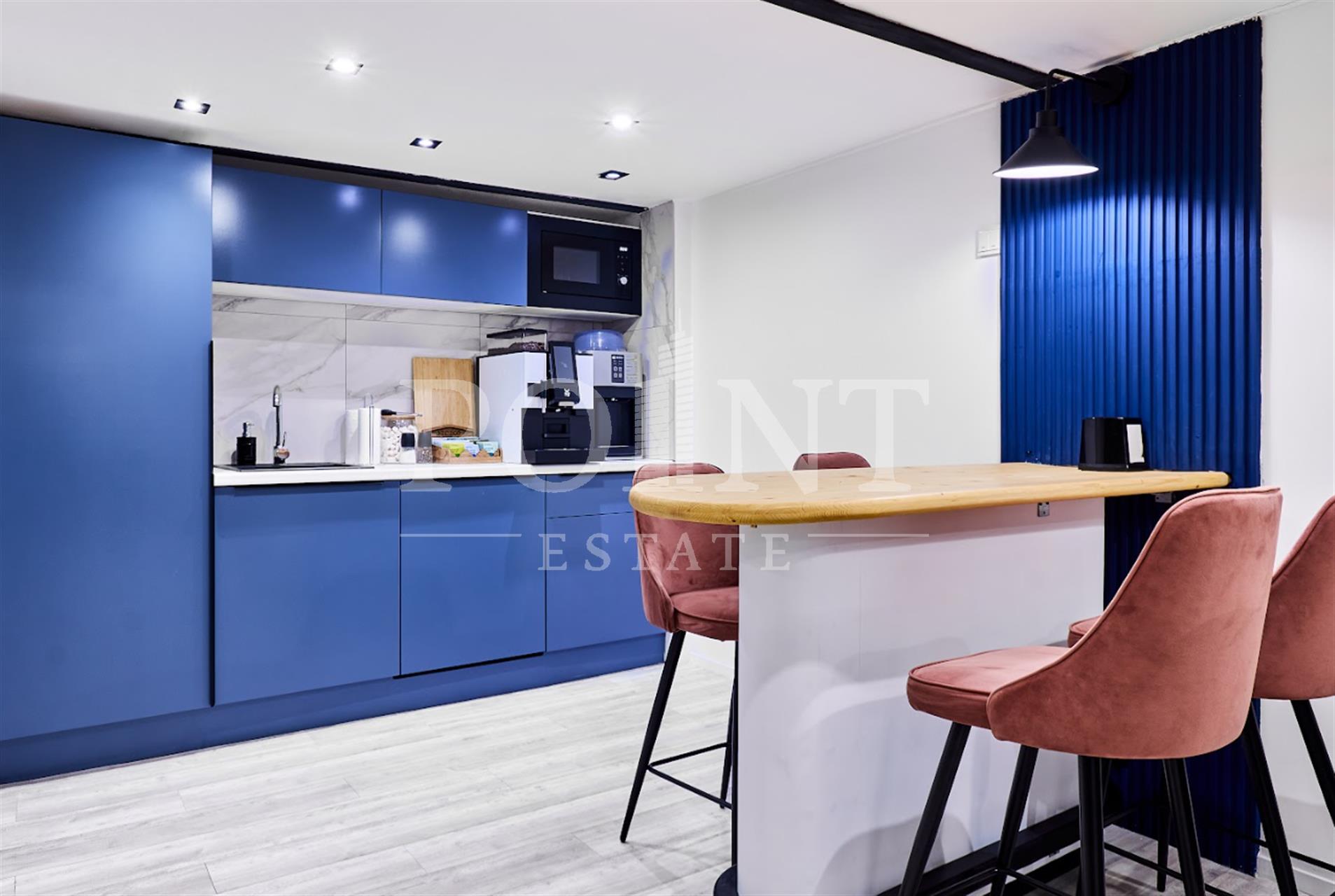 Изолированный офисный блок в двух уровнях на 1-м этаже. Общая площадь 430 кв.м., рассадка организована на 57 рабочих места. Дизайнерский ремонт. Офис полностью укомплектован мебелью и техникой, включены все платежи в ставку аренды: клининг, чай/кофе/вода, расходные материалы, мелкий бытовой ремонт, высокоскоростной интернет, налог, коммунальные и эксплуатационные платежи, мебель, техника, охрана и тд. Высокие потолки в помещении - 5 метров. витринные окна обеспечивают отличное дневное освещение. Парковочные места предоставляются по запросу. Инфраструктура рядом - Универмаг Цветной, Центральный рынок.