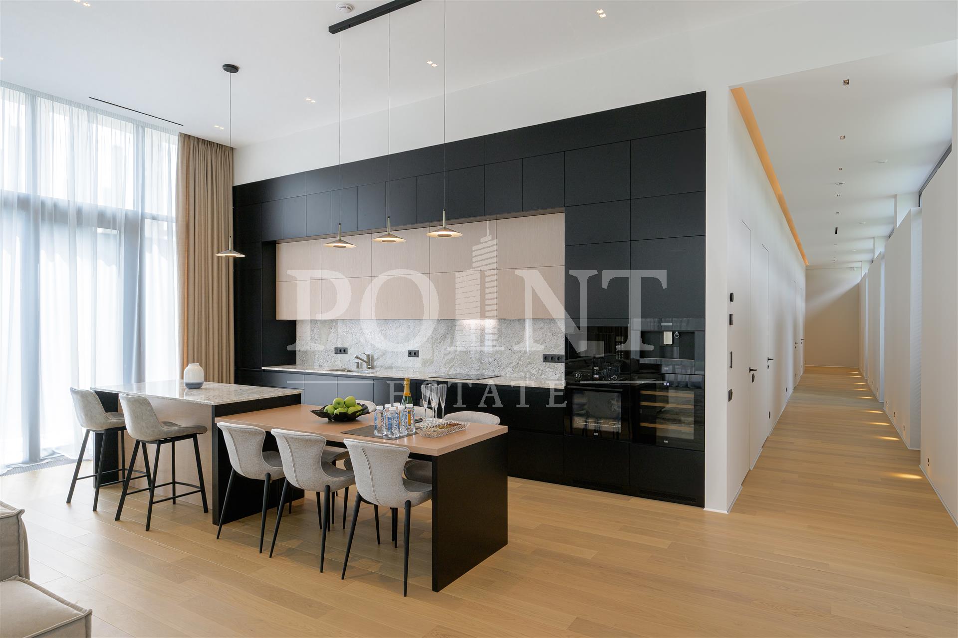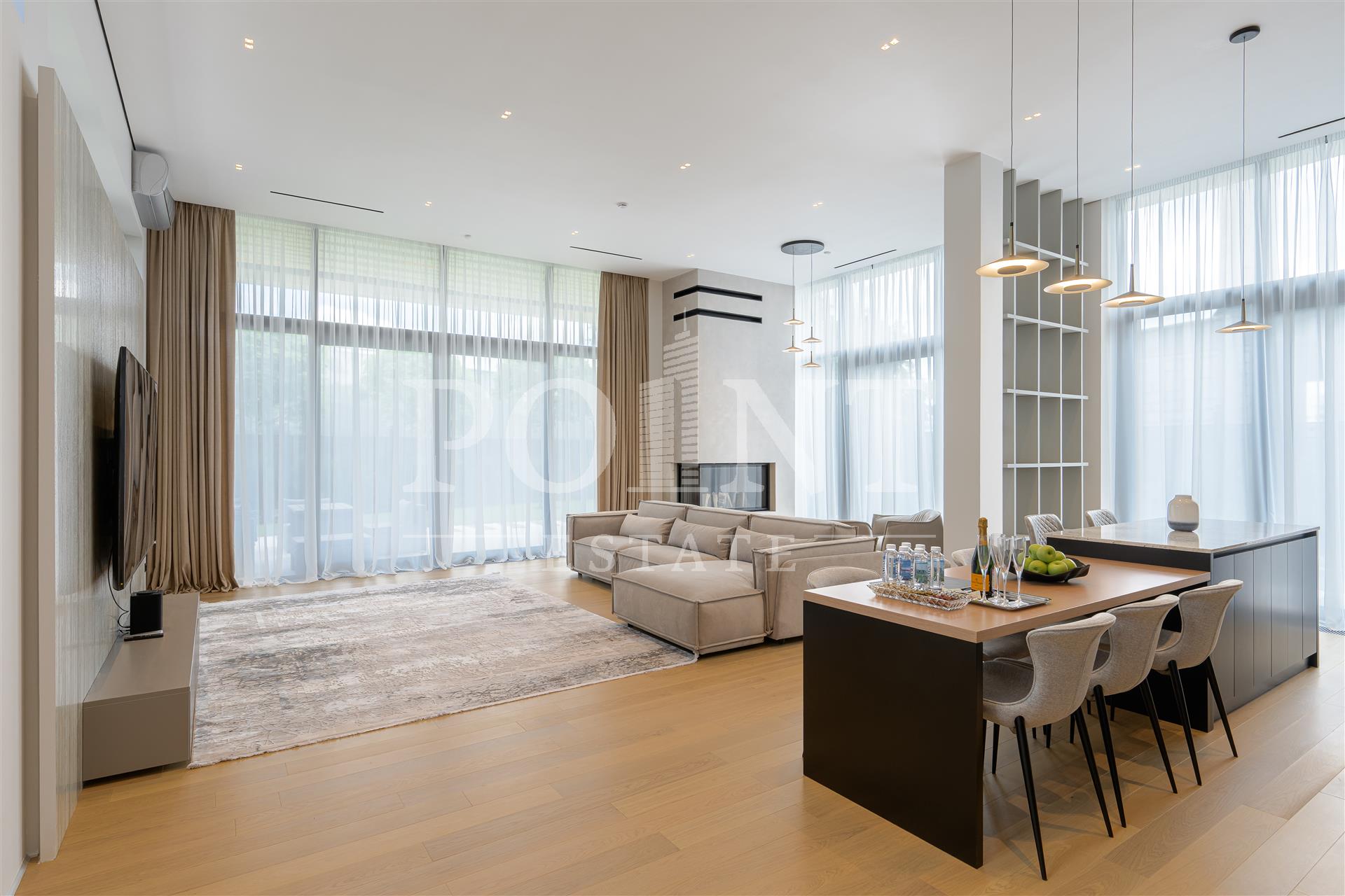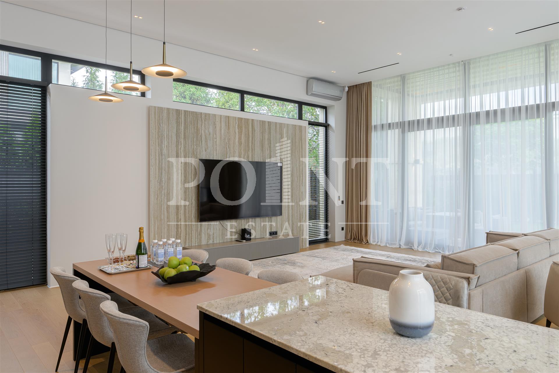 Новый современный одноэтажный дом в элитном поселке "Миллениум Парк" в пешей доступности от парковых зон. Фасад дома отделан натуральным камнем. Потолки высотой до 4,5 м подчеркивают конструктивные линии дома и делают пространство еще просторнее. Изысканный интерьер создан из высококачественных материалов от ведущих европейских производителей. Установлена приточно-вытяжная вентиляция с рекуперацией и увлажнением воздуха, охранно-пожарная сигнализация. Интегрирована система управления "умный" дом. Возможность управлять светом, климатом, отоплением, электроприборами, водоснабжением и другими функциями, находясь вне дома. На участке произведены все ландшафтные работы: дренажные системы, газон, освещение участка, обогрев уличной площадки для автомобилей.