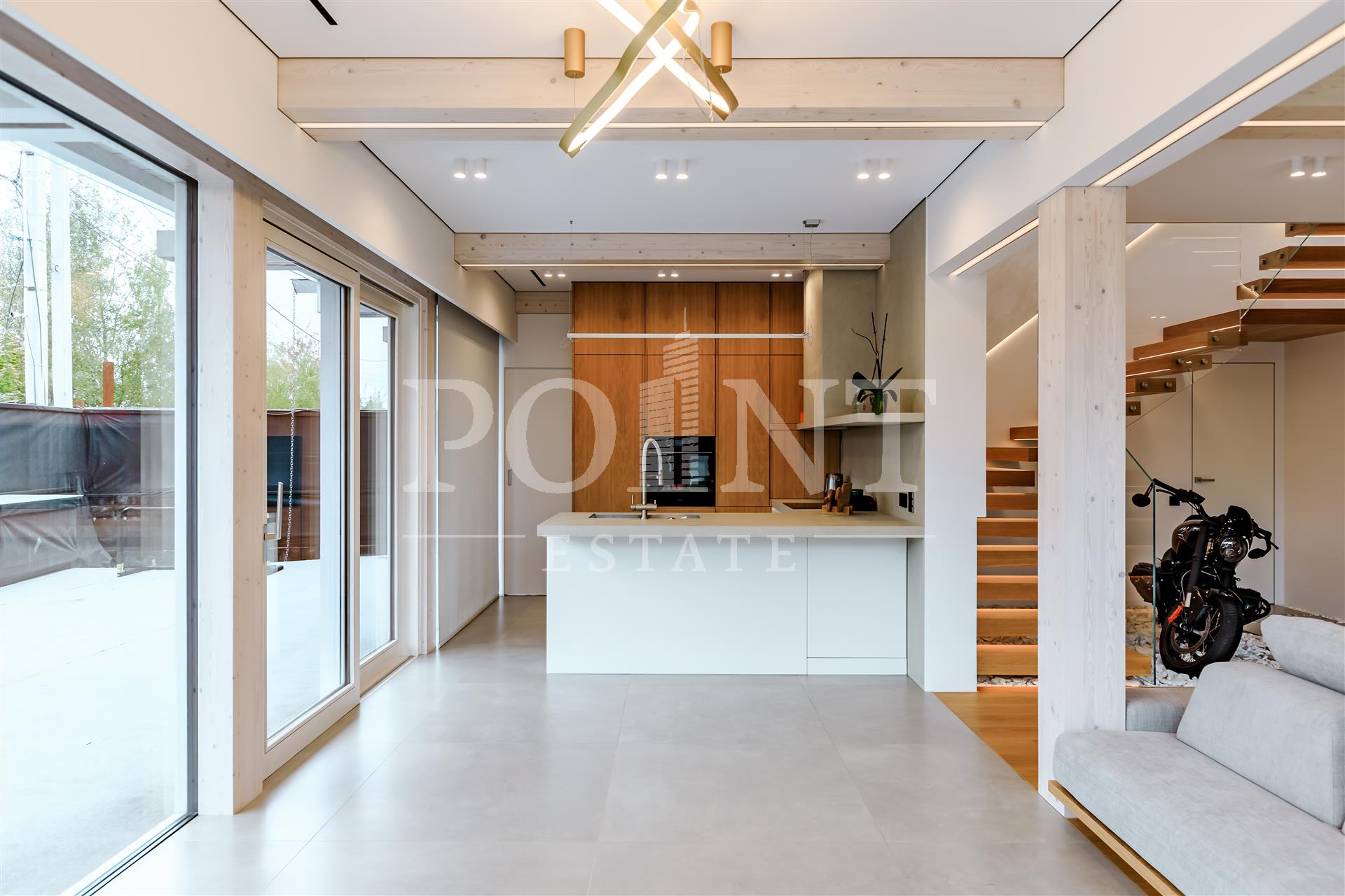 Двухэтажный загородный дом в стиле фахверк площадью 261 кв.м под ключ без мебели располагается на участке правильной формы размером 6 соток в населенном пункте "Подушкино". Комфортная планировка. На первом уровне находится гостиная, объединенная с кухней и обеденной зоной, спальня, санузел, постирочная, котельная, кладовая, прихожая. Второй уровень занимают две спальни с индивидуальными гардеробными, одна из которых со своим санузлом, кабинет, санузел, холл, два балкона. Развитая инфраструктура Рублево-Успенского направления к услугам жителей. Местность привлекает внимание близостью столицы, отличной транспортной доступностью, тесным соседством с престижными торговыми центрами, спортивными комплексами и школами.