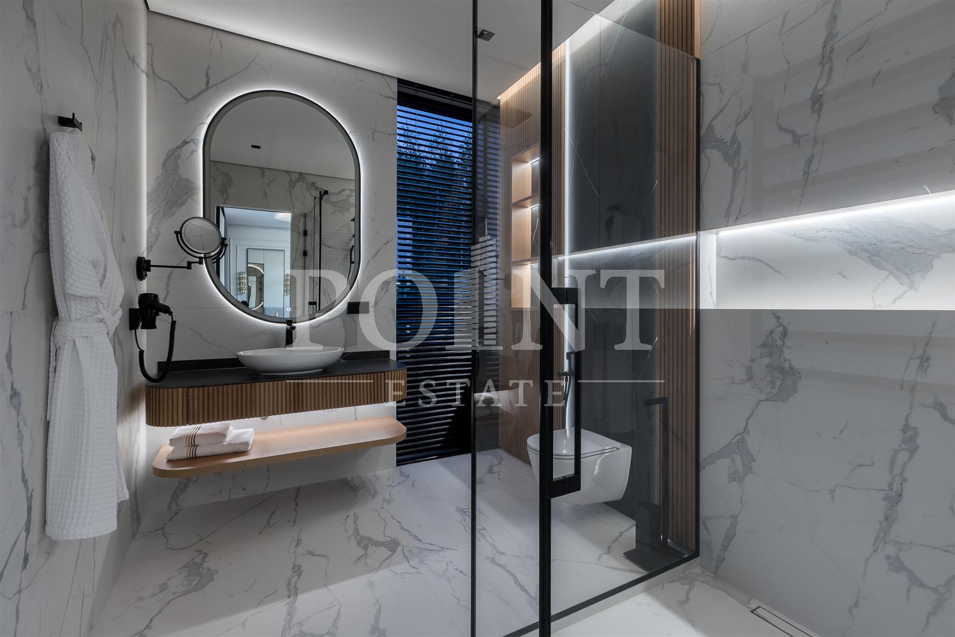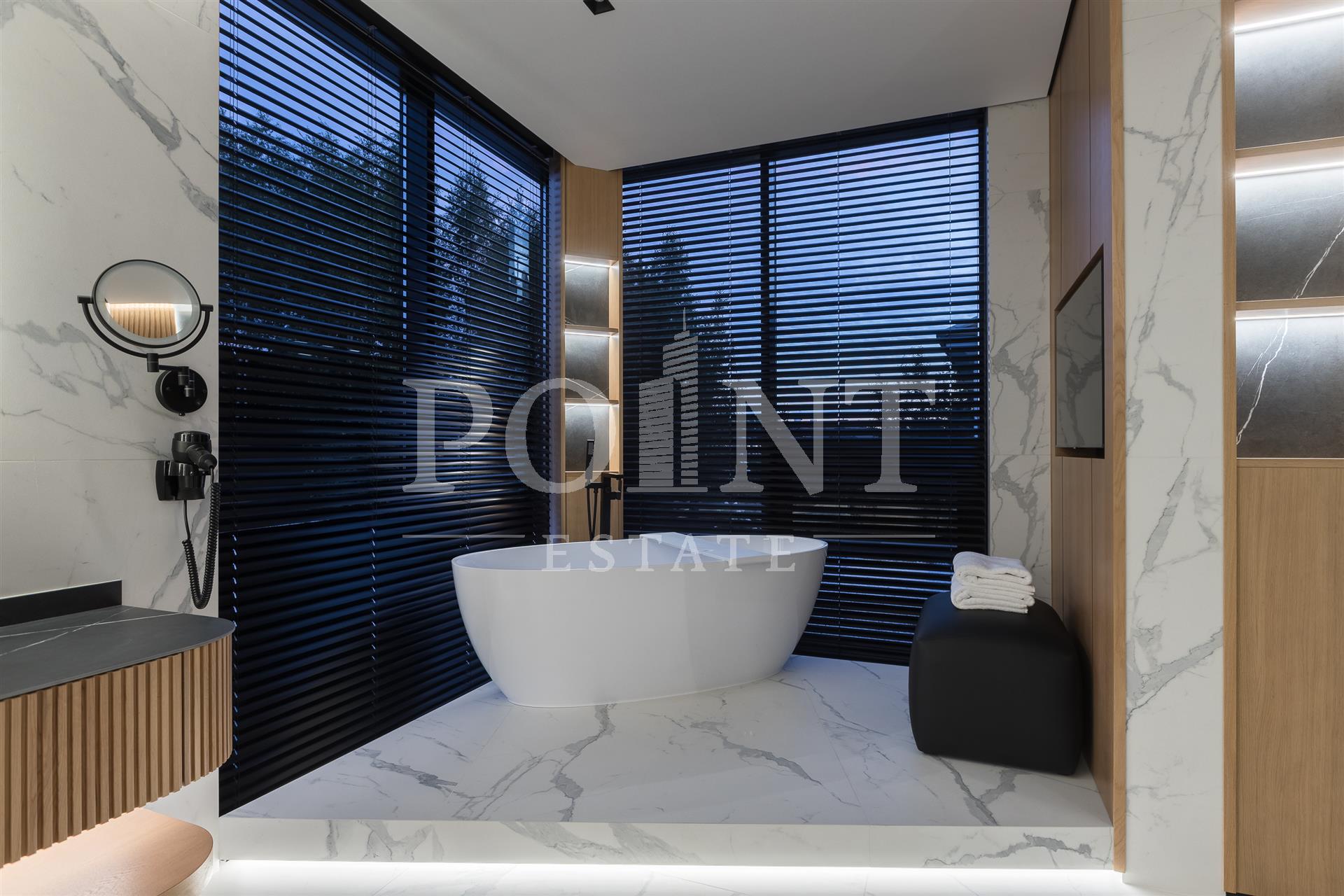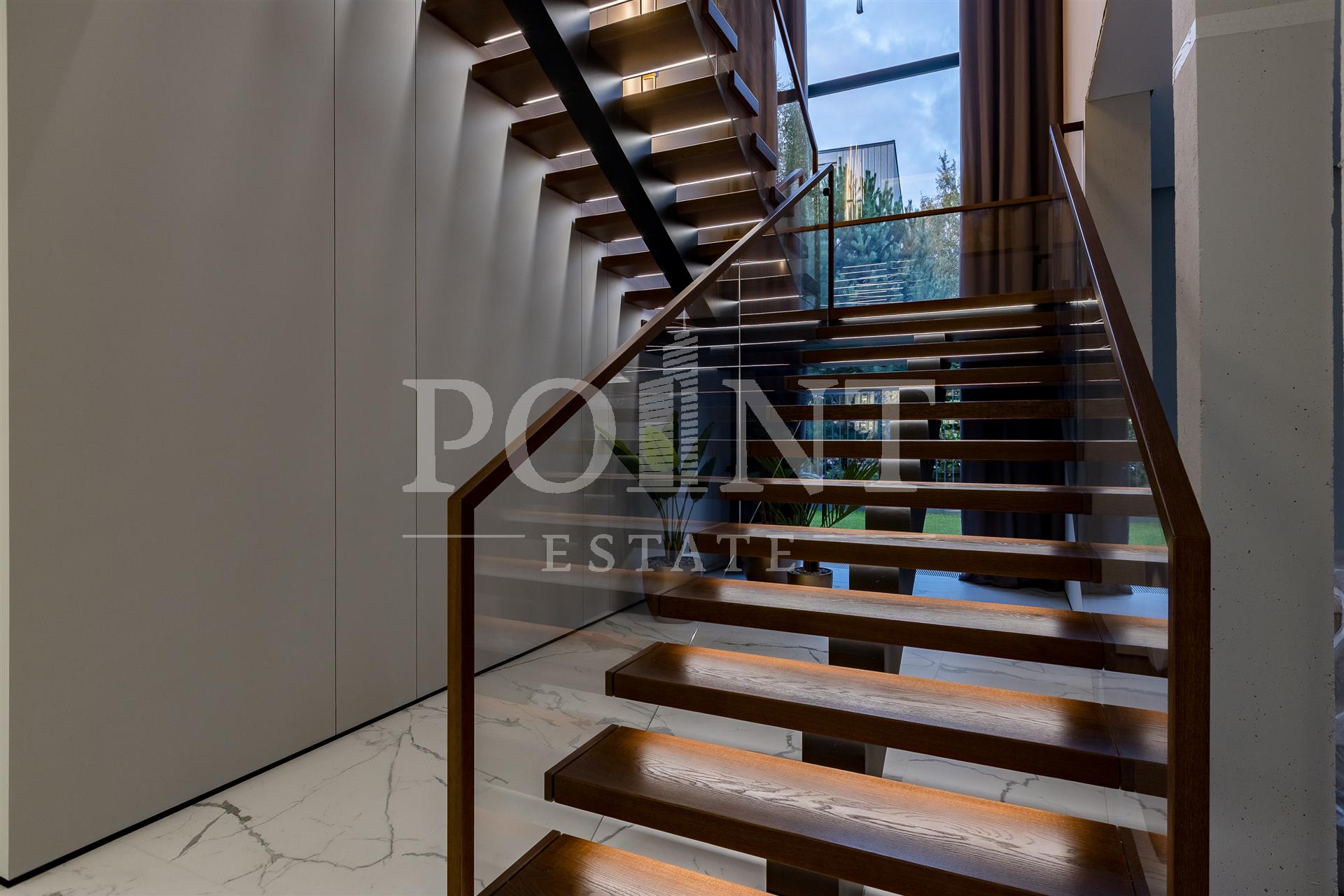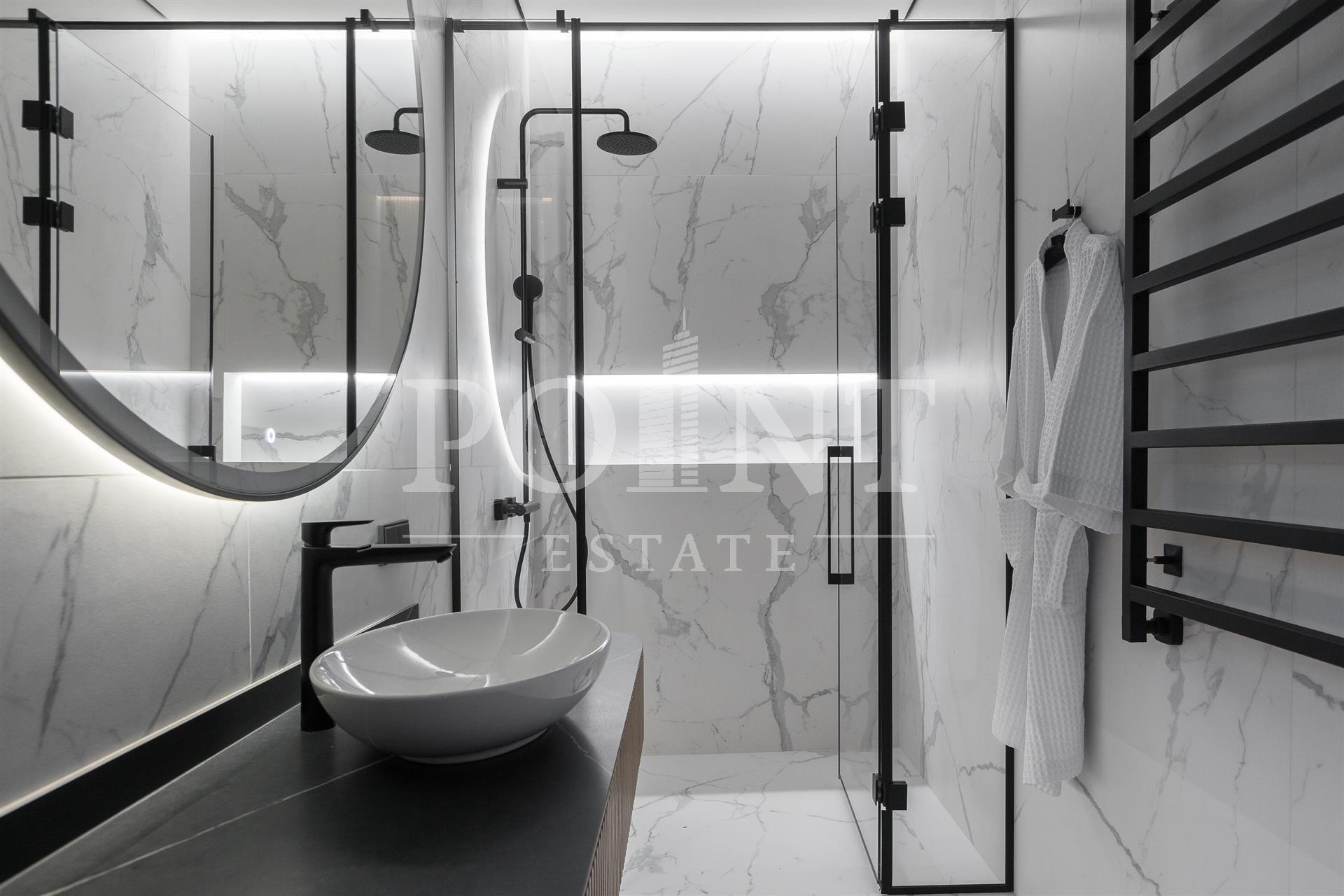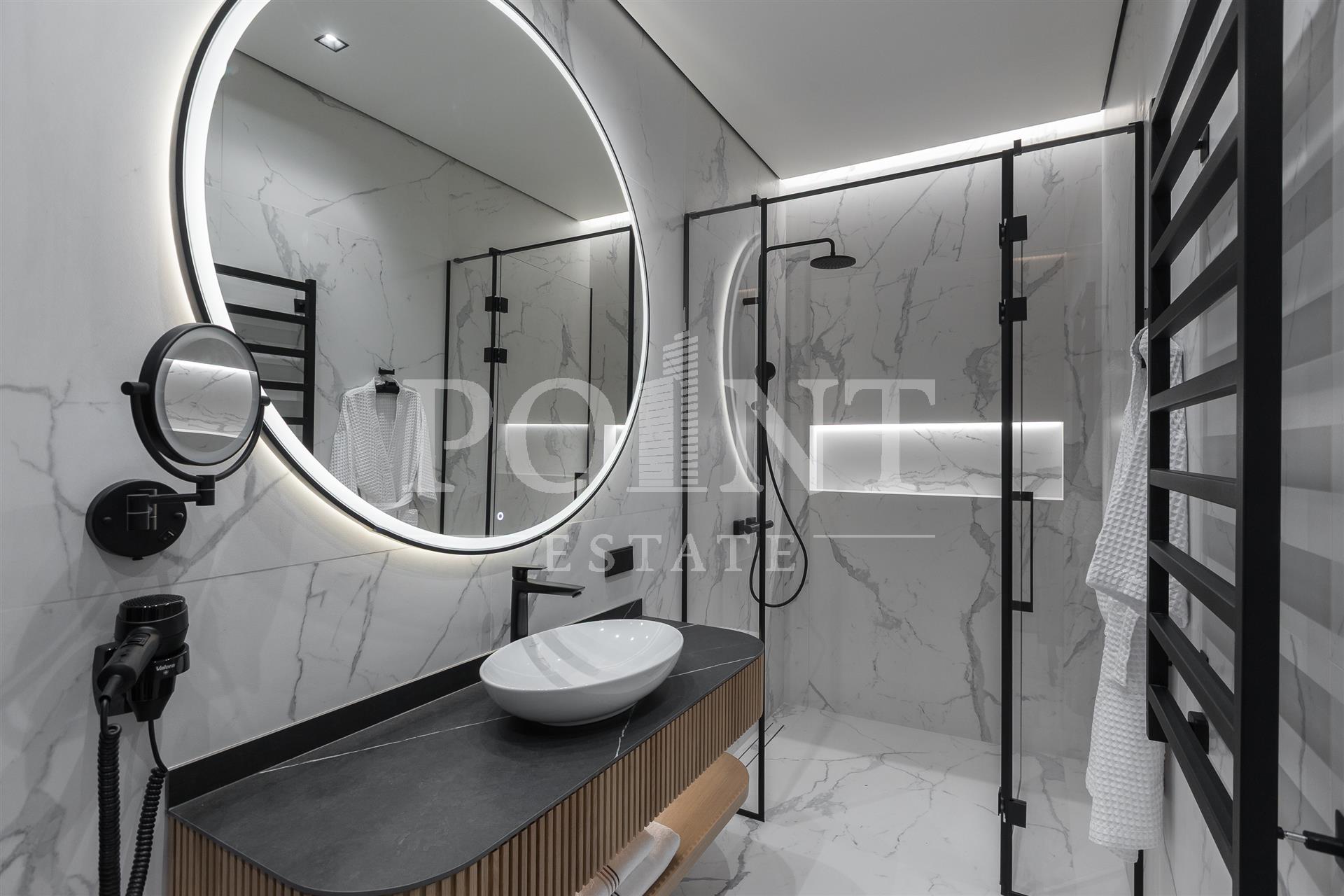 Предлагается на продажу современный новый, меблированный дом "под ключ" с панорамным остеклением и террасами. Планировка дома: 1 этаж: Холл, гардеробная, санузлом, постирочная, гостевая спальня с санузлом, гостиная, кухня, кладовая, столовая с выходом на террасу, спа зона: хамам, санузлом, бассейн, спортзал, гараж на 2 авто, квартира для персонала с отдельным входом; 2 этаж: Мастер спальня с санузлом и 2 гардеробными, спальня с санузлом и гардеробной, спальня с санузлом, гардеробной и кабинетом, холл. Выход на эксплуатируемую кровлю.