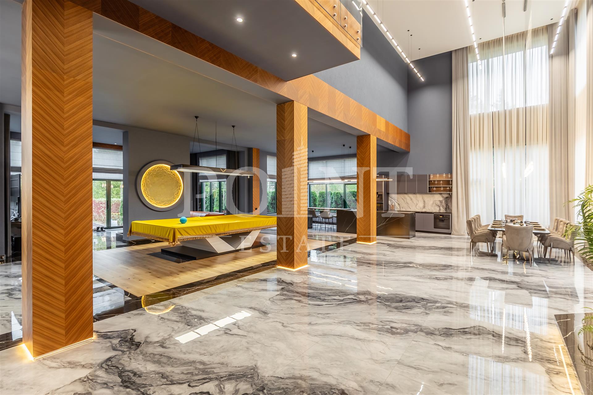 прихожая, гардеробная, 1/2 санузла, терраса, гараж, гостиная со вторым светом, кухня-столовая
