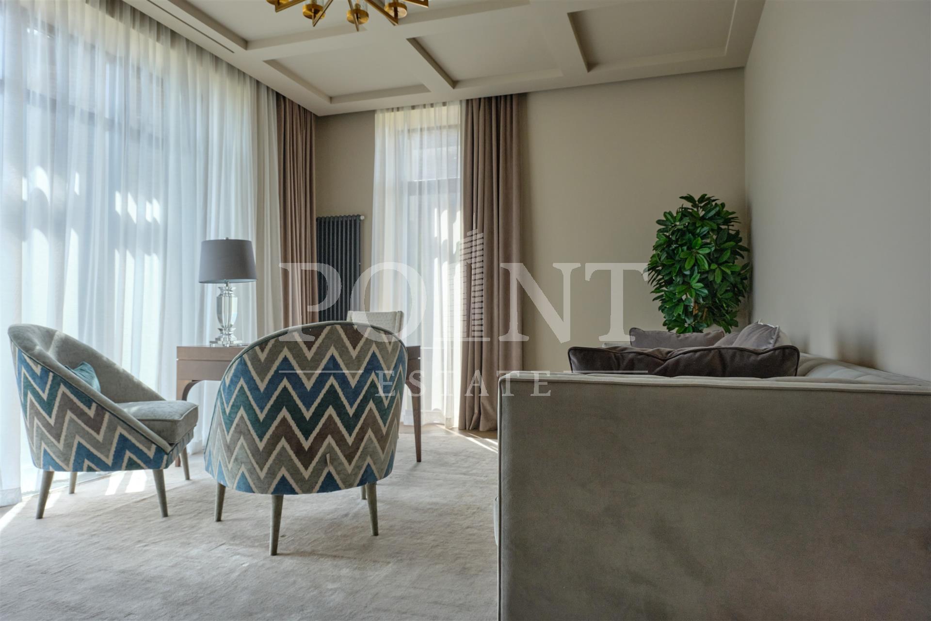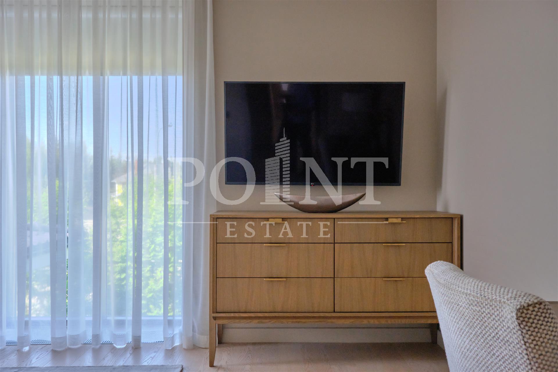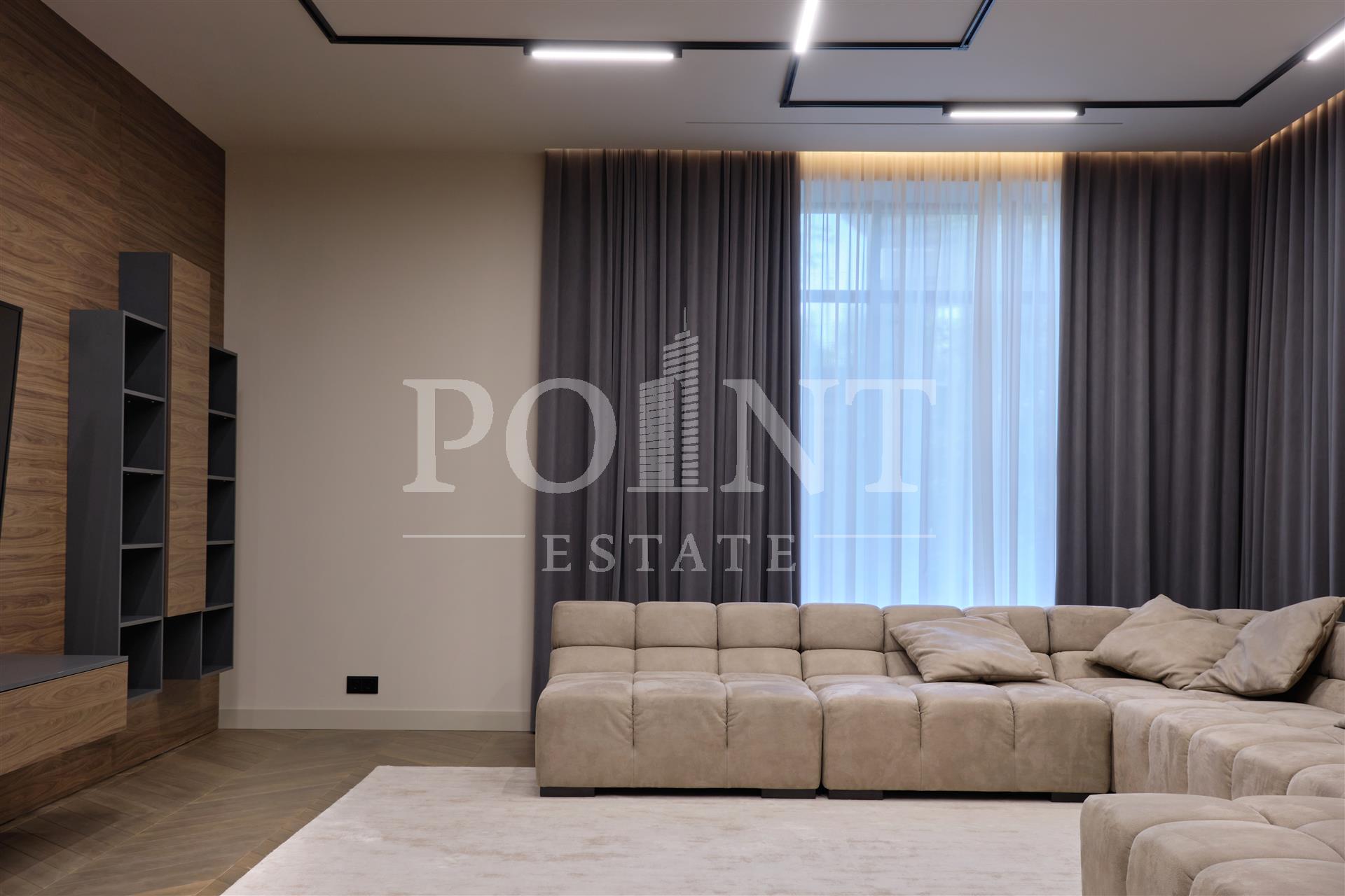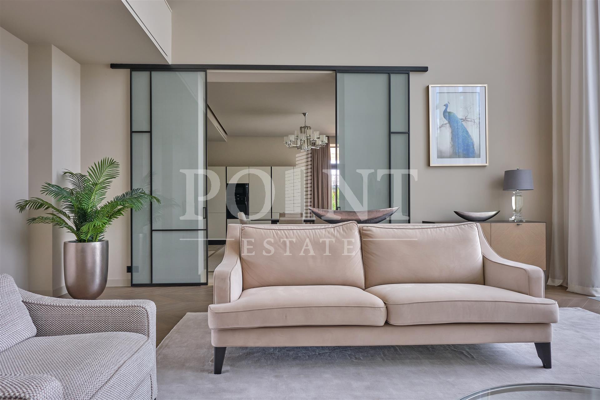 Данный дом выполнен с особым вниманием к деталям. Основная идея заключалась в создании максимального комфорта для жильцов. Устойчивые к климатическим условиям строительные материалы и энергосберегающие технологии делают дом не только эстетичным, но и экономичным в эксплуатации. На 1-ом этаже расположены: кухня-столовая, гостиная со вторым светом и камином, гостиная, кабинет, гостевой санузел, сауна, терраса, холл, хаммам. На 2-ом этаже расположены: спальня с гардеробной и санузлом, три спальни с санузлом, холл, гардеробная, балкон. Каждая деталь, от отделки стен до выбора мебели, тщательно продумана и выполнена с любовью. Среди акцентов можно выделить натуральное дерево, элементы стеклянных перегородок и дизайнерские осветительные приборы.