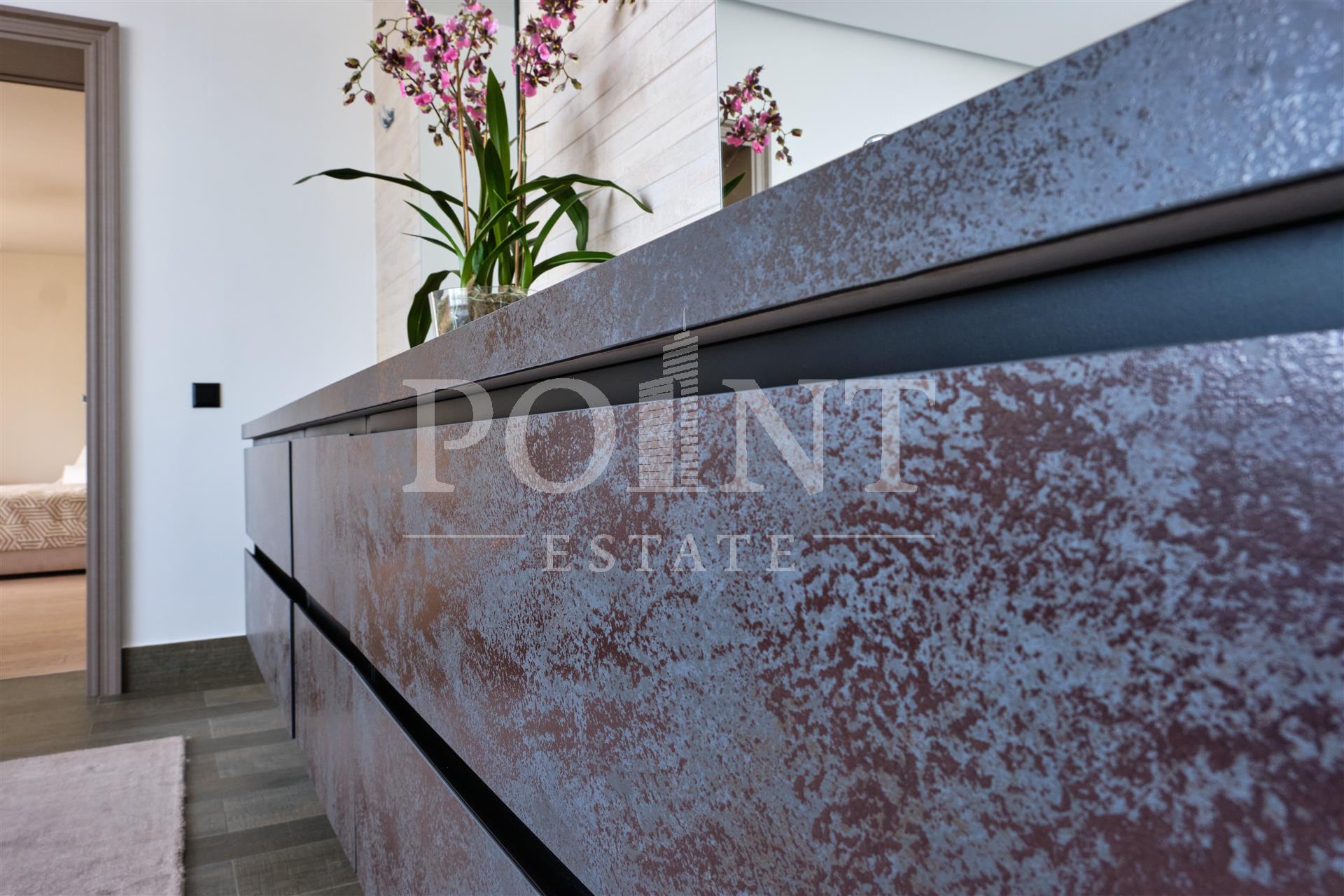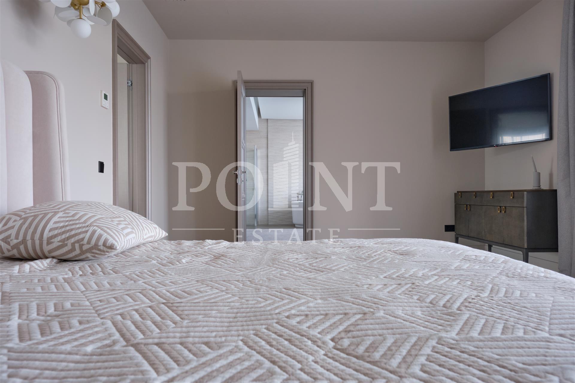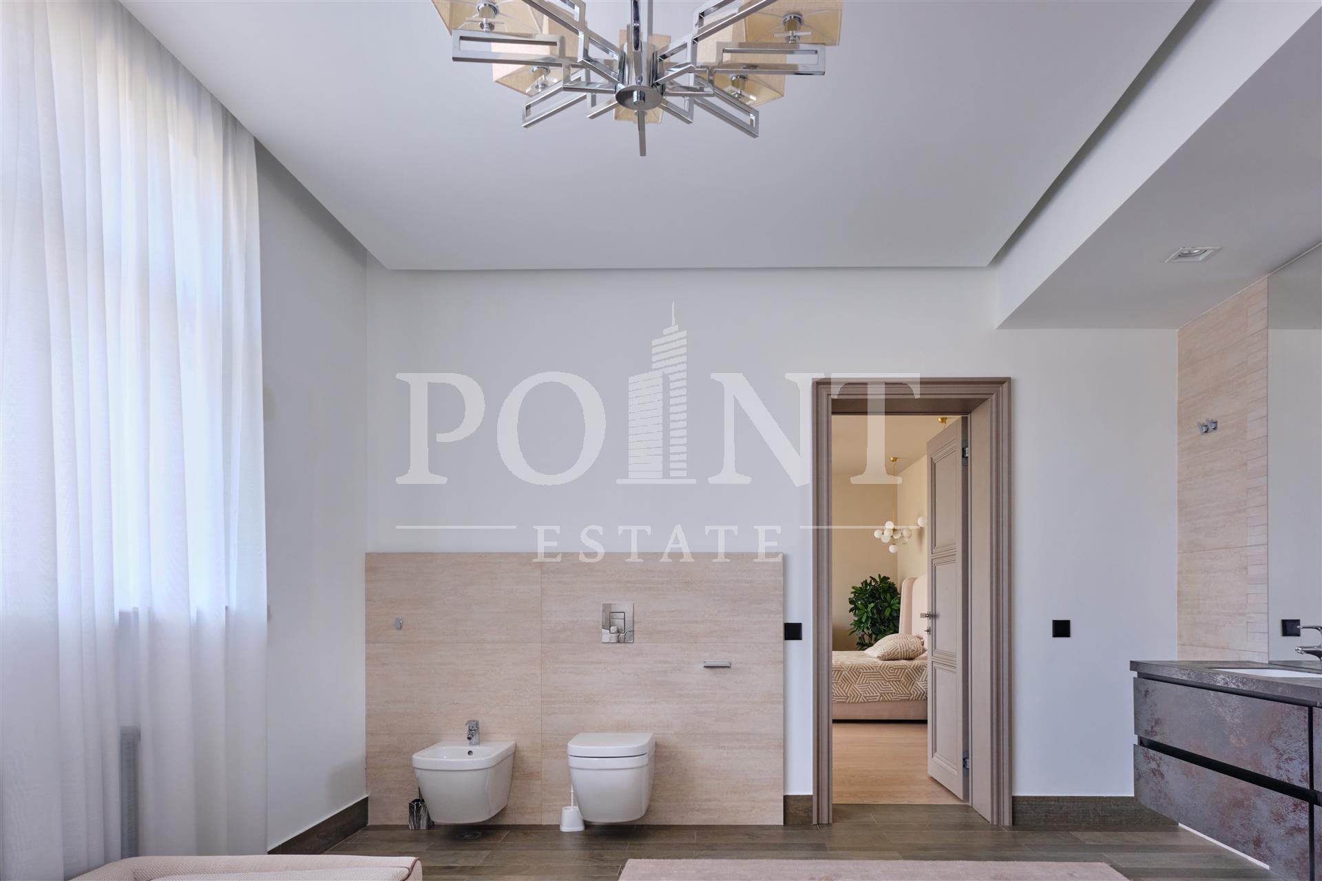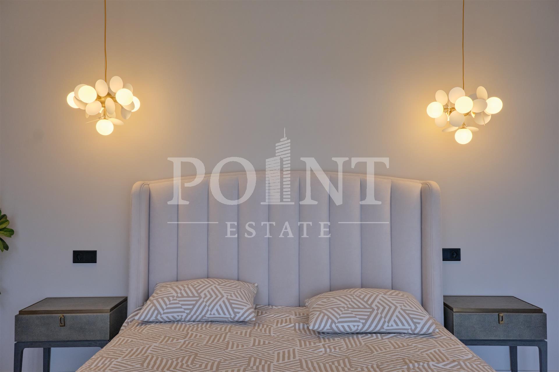 Данный дом выполнен с особым вниманием к деталям. Основная идея заключалась в создании максимального комфорта для жильцов. Устойчивые к климатическим условиям строительные материалы и энергосберегающие технологии делают дом не только эстетичным, но и экономичным в эксплуатации. На 1-ом этаже расположены: кухня-столовая, гостиная со вторым светом и камином, гостиная, кабинет, гостевой санузел, сауна, терраса, холл, хаммам. На 2-ом этаже расположены: спальня с гардеробной и санузлом, три спальни с санузлом, холл, гардеробная, балкон. Каждая деталь, от отделки стен до выбора мебели, тщательно продумана и выполнена с любовью. Среди акцентов можно выделить натуральное дерево, элементы стеклянных перегородок и дизайнерские осветительные приборы.