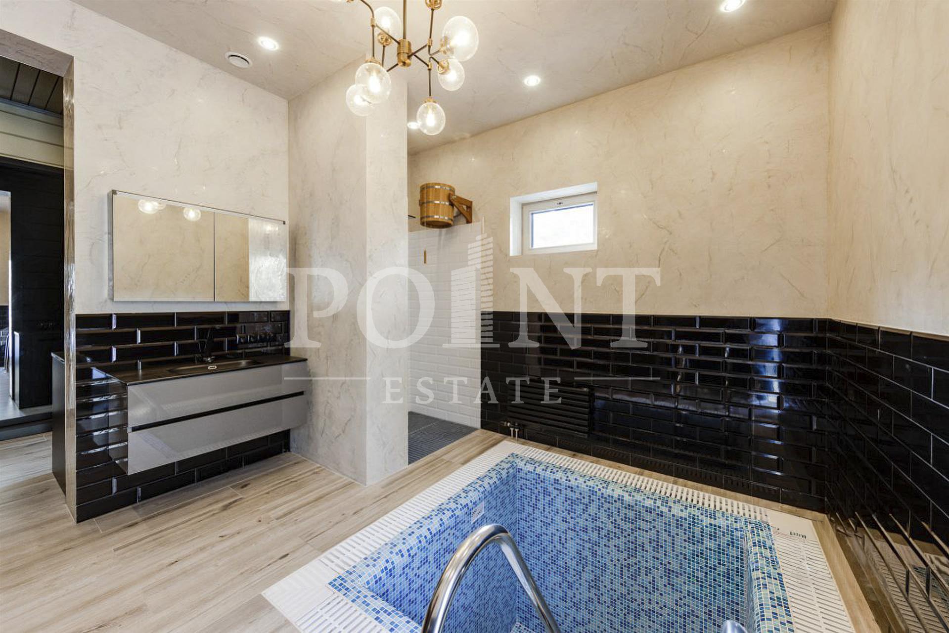 Двухэтажный загородный особняк площадью 700 кв.м построен на участке 20 соток в элитном поселке "Ренессанс Парк". Ремонт выполнен из качественных натуральных отделочных материалов, техники топ-брендов, встроенной мебели и сантехники ведущих европейских производителей, установлено премиальное освещение. Функциональное зонирование внутреннего пространства. На первом этаже находится гостиная-столовая, прихожая, кухня, гостевой санузел, гардеробная, терраса, гараж, котельная, холл. Второй этаж занимают четыре спальни с гардеробной и санузлом, холл. На участке отдельно построен SPA-комплекс. Поселок находится в окружении вечнозеленого леса и живописных подмосковных пейзажей. На территории: спортивные площадки и теннисный корт, детский клуб и игровые площадки, песчаный пляж у озера и ресторан класса люкс.