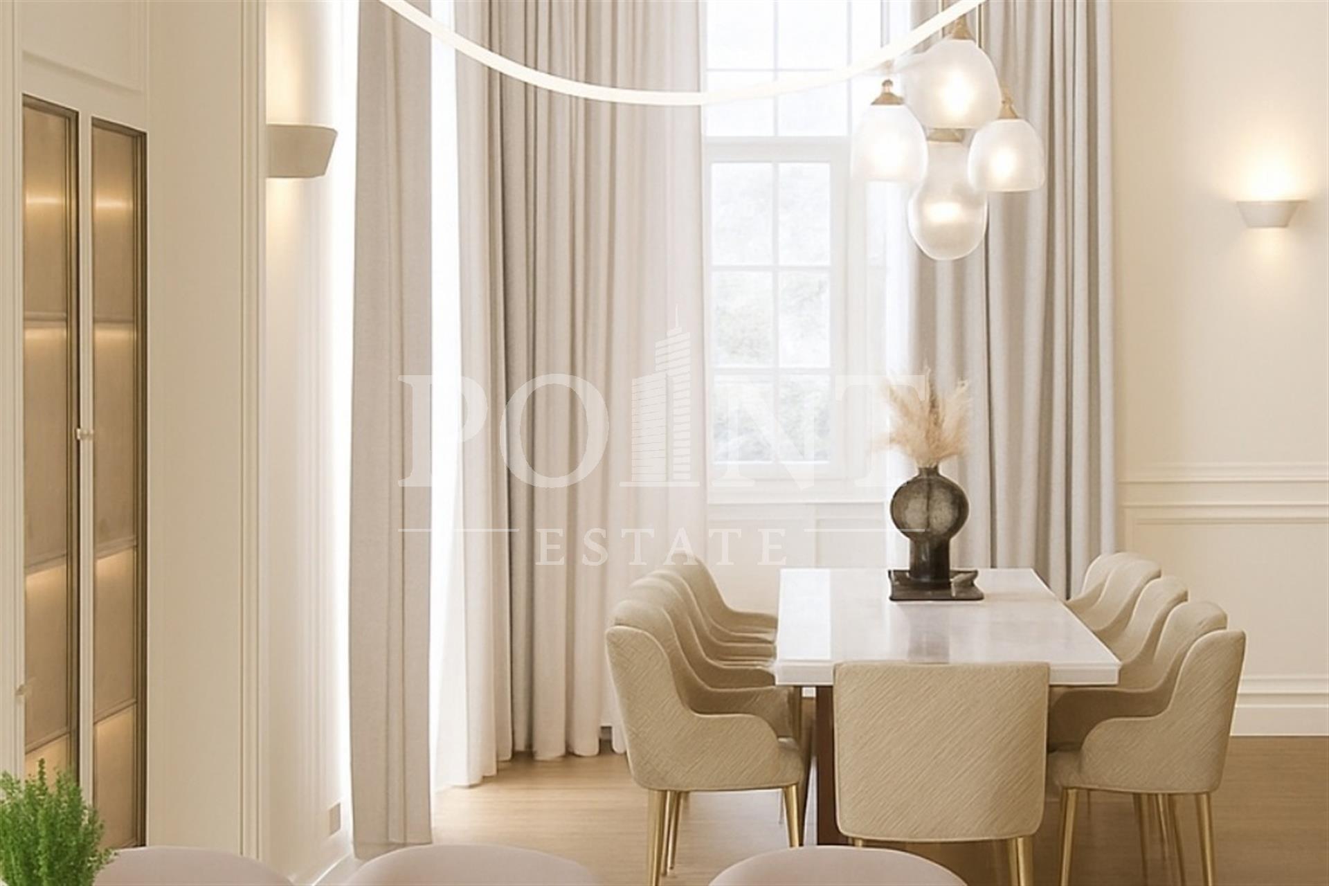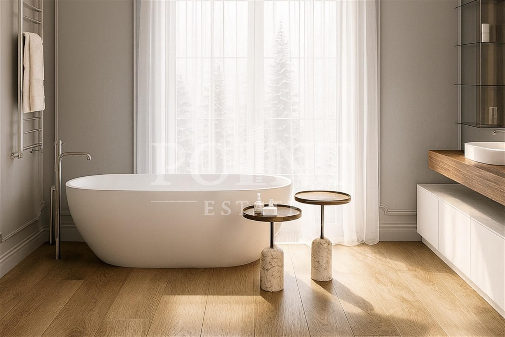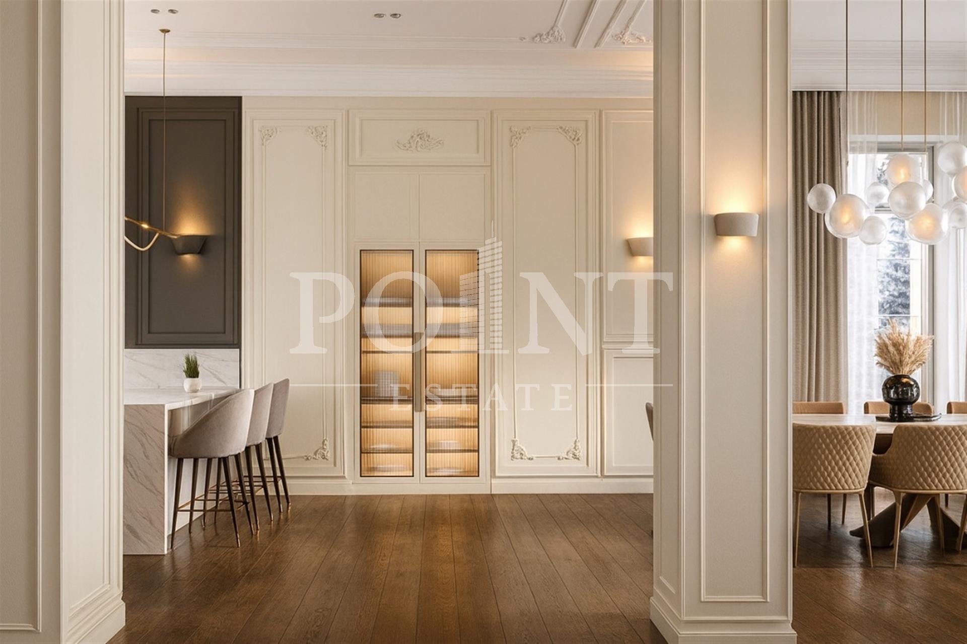 Светлый загородный дом площадью 600 кв.м. "под ключ", построенный на участке 18.50 соток с дорогим ландшафтным оформлением в охраняемом поселке "Монтевиль". При строительстве и отделке использовались высококачественные материалы. Внутреннее пространство грамотно спланировано. На первом этаже прихожая, гостиная со вторым светом и камином, кабинет, спальня с санузлом, гостевой санузел, гардеробная, холл, терраса, котельная, постирочная, блок для персонала. Второй этаж полностью отдан спальной зоне и представлен тремя спальнями с санузлами и гардеробными. Мансардный этаж вместил салон красоты, спальню с санузлом, хаммам, комната персонала, гардеробная. В 5-10 минутах езды расположены как частные, так и государственные школы и детские сады, медицинские и торговые центры, фитнес-клубы, банки и рестораны.
