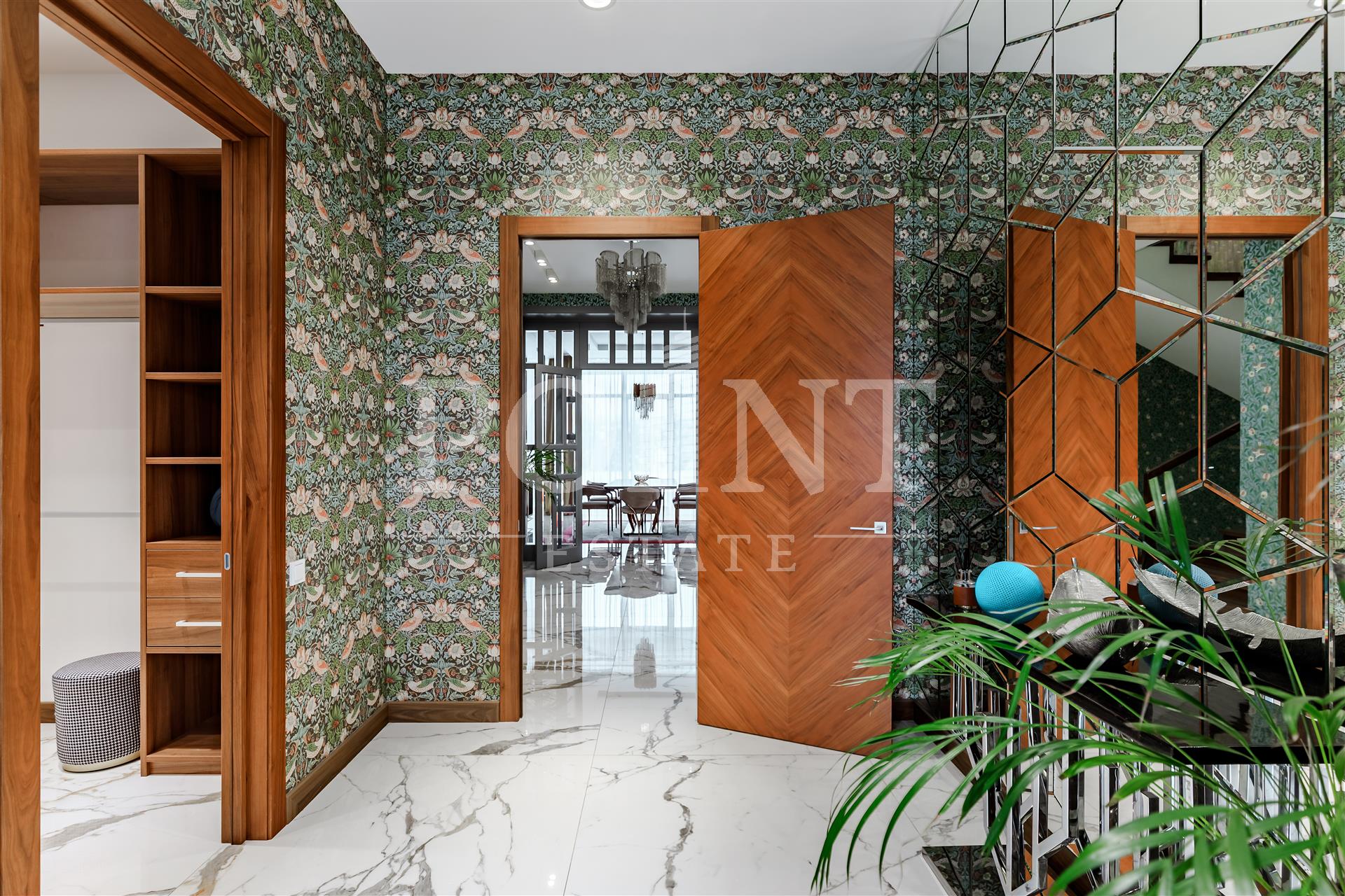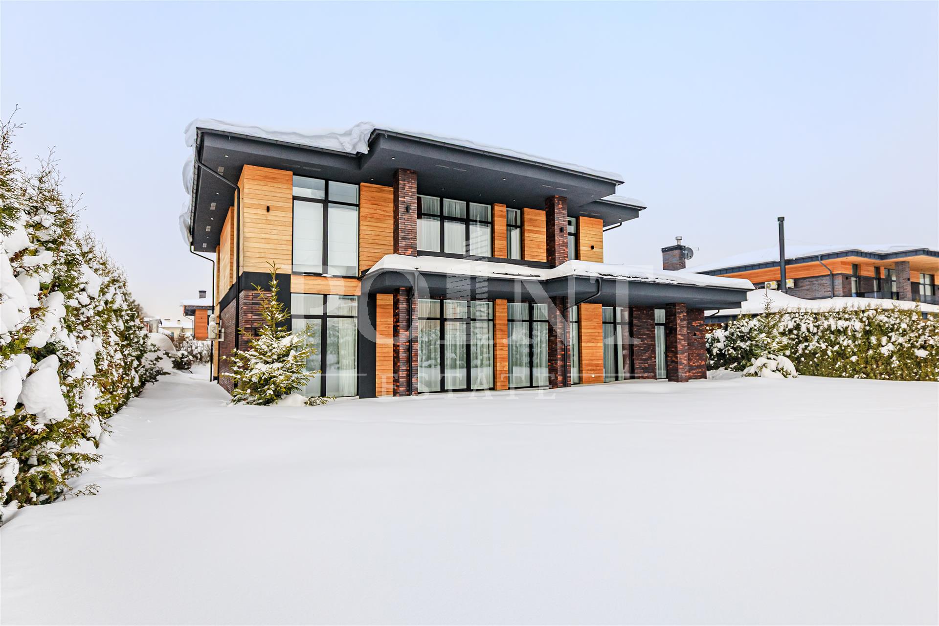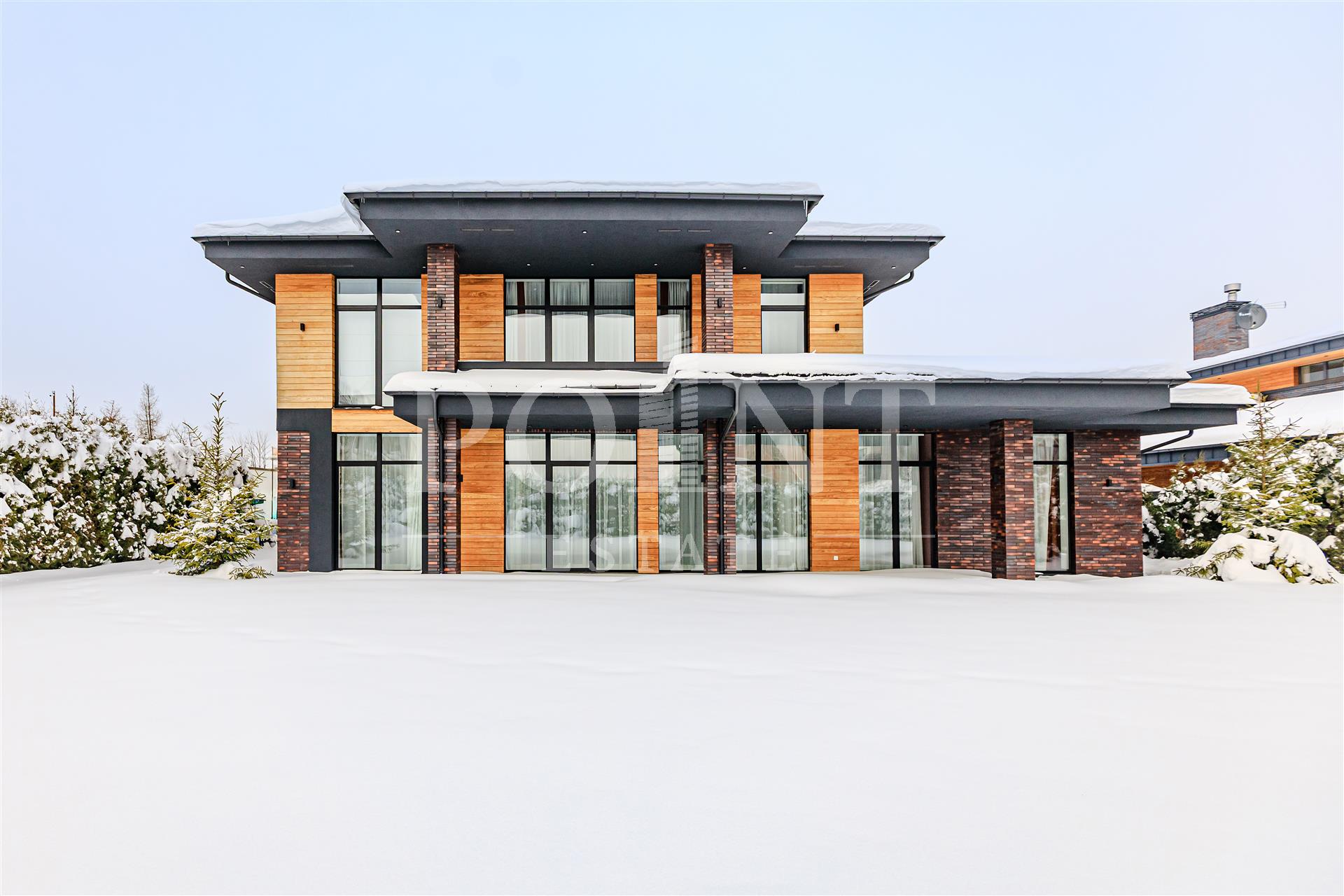 Предлагается к продаже двухэтажный дом общей площадью 446 кв.м в престижном коттеджном поселке "Миллениум Парк". В доме выполнен ремонт с использованием высококачественных материалов, установлена современная техника и премиальная мебель. Дом построен в стиле Райта — его визитная карточка это панорамные окна в пол, которые наполняют пространство светом. Внешняя отделка сочетает клинкер и лиственницу, а в интерьере использованы натуральные материалы из Италии, Германии и Финляндии, включая английские обои Morris, аутентичные хрустальные люстры из Италии, авторскую живопись и зеркальные панно. Планировка дома продумана для комфортного проживания: на первом этаже расположены холл, гостиная, столовая, кухня, две спальни с санузлом и гардеробной, бойлерная и терраса. На втором этаже находятся три спальни с санузлами и гардеробными, а так же постирочная.
