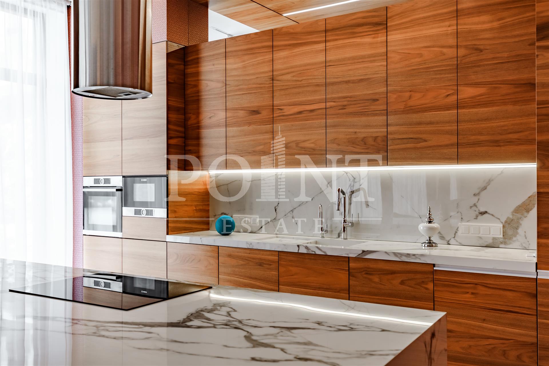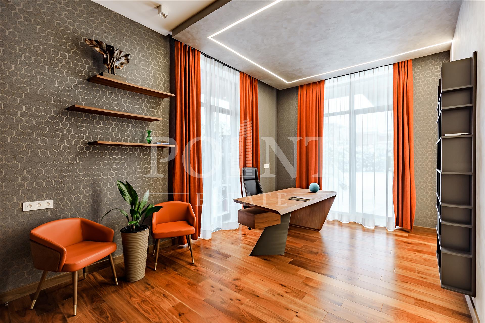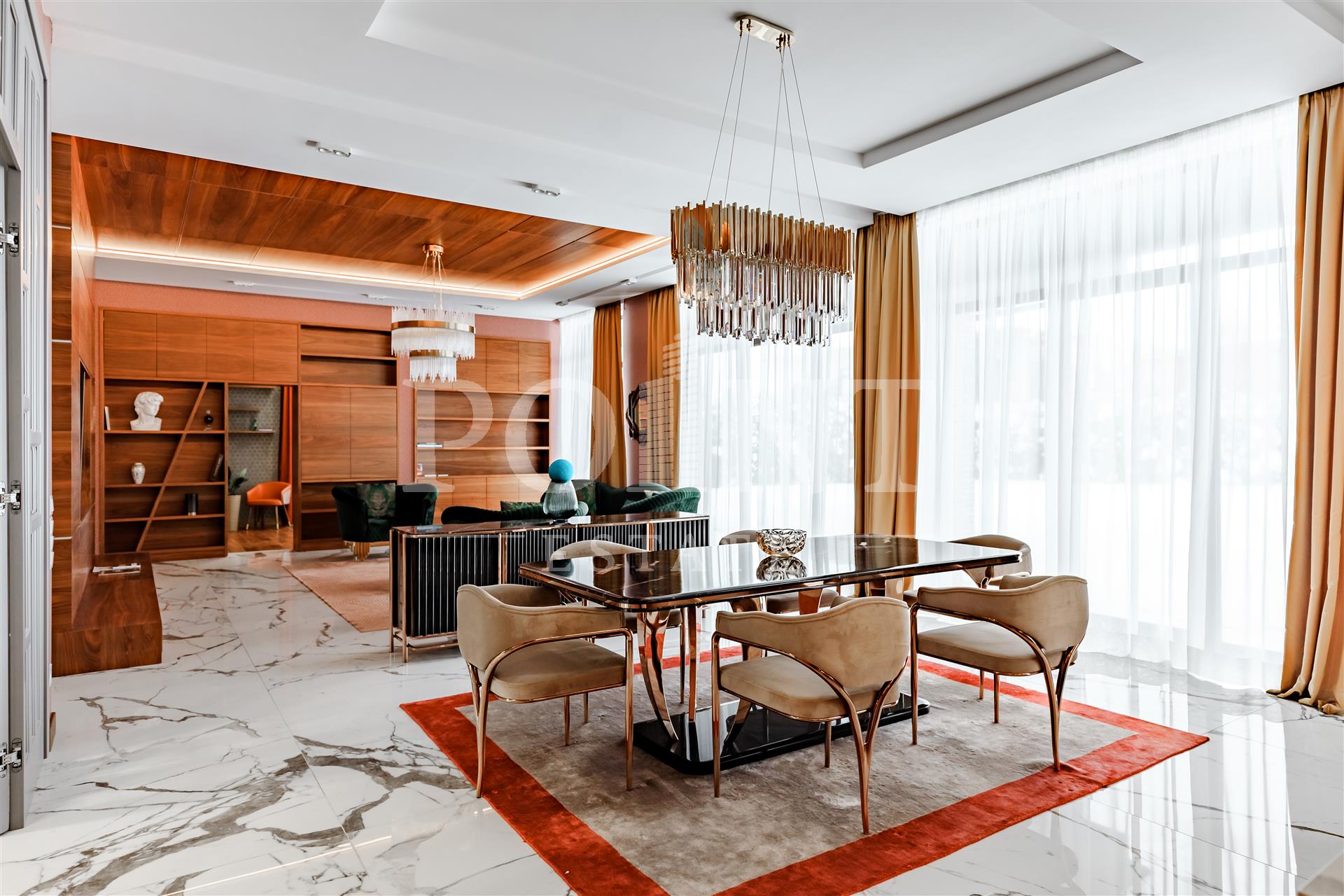 Предлагается к продаже двухэтажный дом общей площадью 446 кв.м в престижном коттеджном поселке "Миллениум Парк". В доме выполнен ремонт с использованием высококачественных материалов, установлена современная техника и премиальная мебель. Дом построен в стиле Райта — его визитная карточка это панорамные окна в пол, которые наполняют пространство светом. Внешняя отделка сочетает клинкер и лиственницу, а в интерьере использованы натуральные материалы из Италии, Германии и Финляндии, включая английские обои Morris, аутентичные хрустальные люстры из Италии, авторскую живопись и зеркальные панно. Планировка дома продумана для комфортного проживания: на первом этаже расположены холл, гостиная, столовая, кухня, две спальни с санузлом и гардеробной, бойлерная и терраса. На втором этаже находятся три спальни с санузлами и гардеробными, а так же постирочная.
