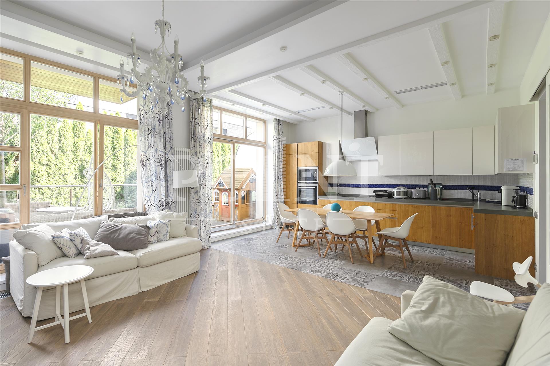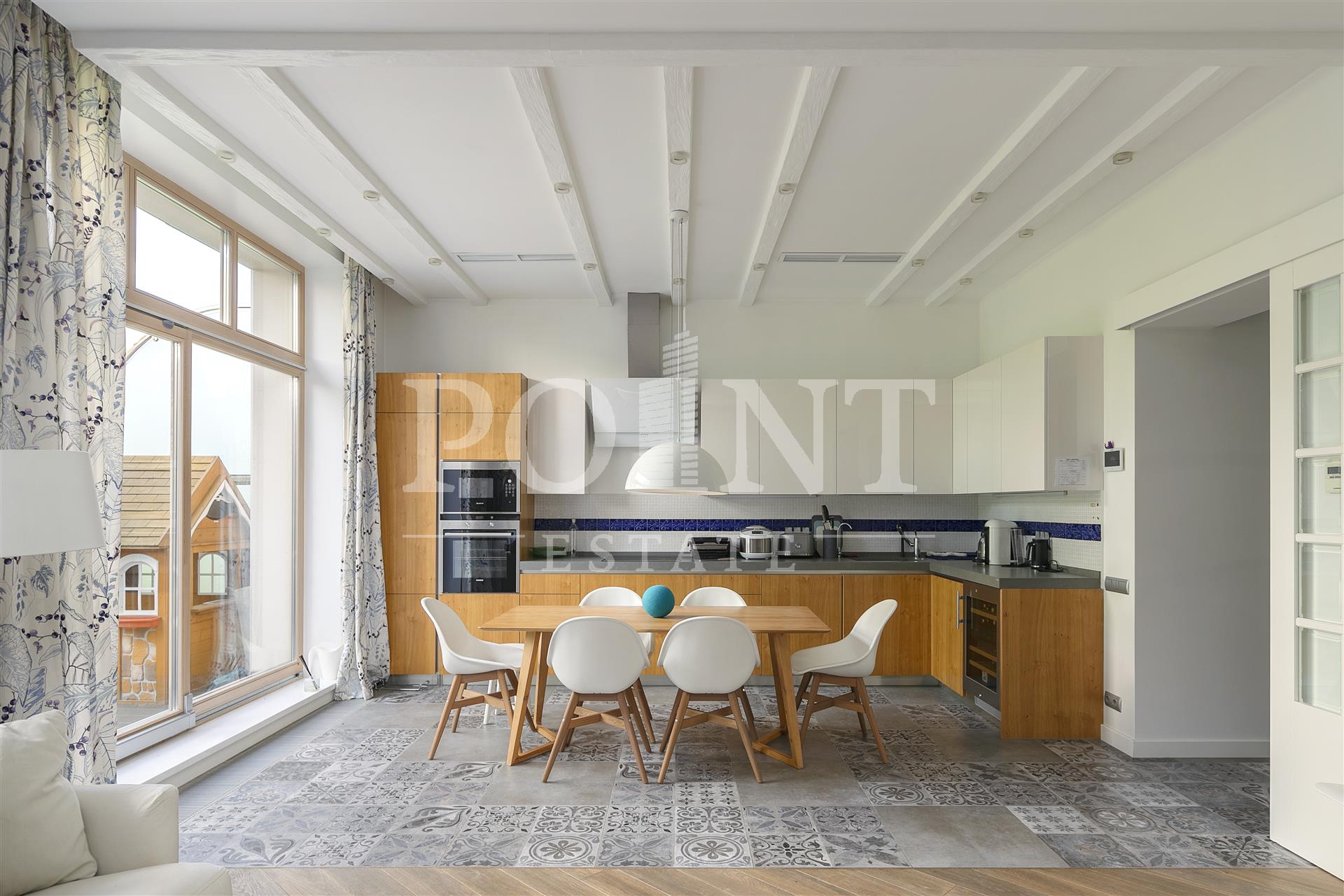В аренду на длительный срок предлагается трехэтажный таунхаус площадью 300 кв.м с дизайнерским ремонтом, расположенный на участке 3 сотки в престижном районе Подмосковья с развитой инфраструктурой. На первом этаже находится гостиная с камином, совмещенная с кухней и обеденной зоной, санузел, гардеробная, прихожая, терраса. Второй этаж занимает гостиная, две спальни, санузел, балкон. Третий этаж отведен под мастер спальню со своей гардеробной и санузлом, детскую с санузлом, гостевую спальню, балкон. Предусмотрен встроенный гараж на одно машино-место. Придомовой участок благоустроен, высажены хвойные деревья. Поселок с великолепным природным пейзажем и прекрасной экологией расположился в удалении от оживленных трасс и в близи живописного леса и загородных поселков класса de luxe.