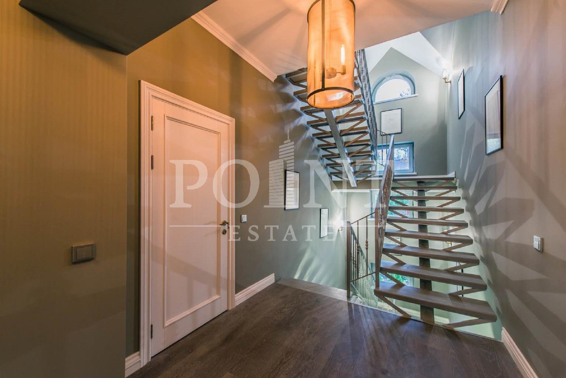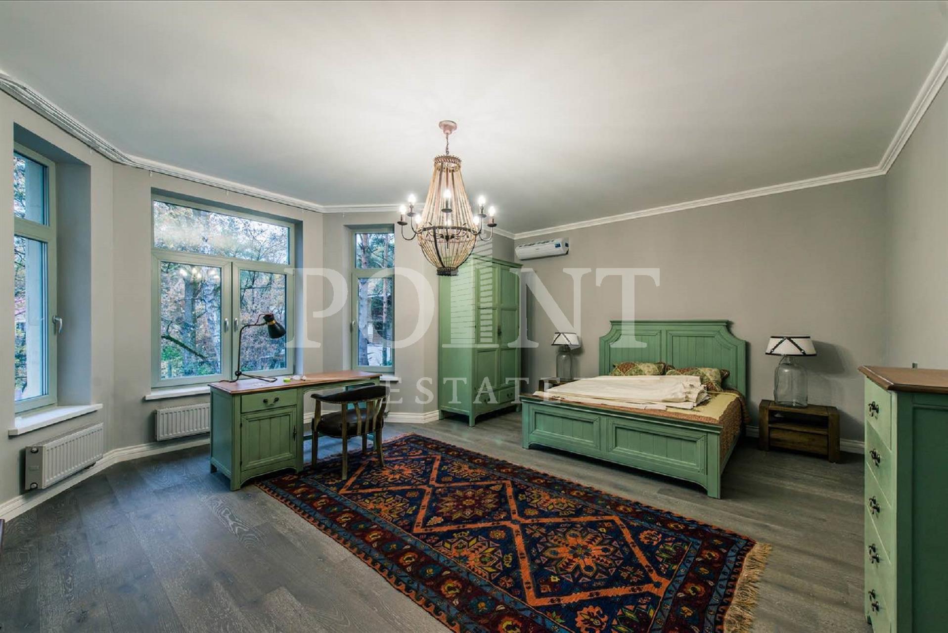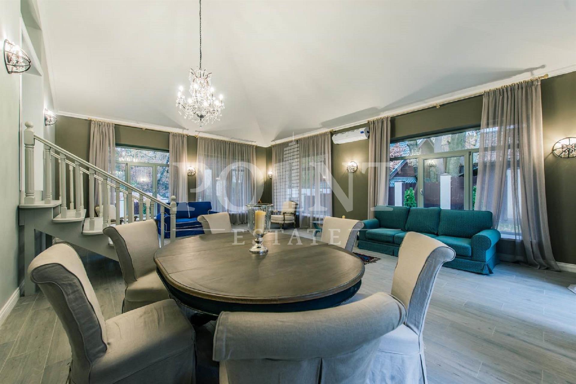 В аренду предлагается четырехуровневый загородный дом площадью 700 кв.м под ключ с мебелью, построенный в лучших традициях классического стиля, на благоустроенном участке 30 соток в живописнейшем уголке Рублево-Успенского шоссе. Интерьерное оформление характеризуется сочетанием современной дизайнерской мысли, изящных классических аксессуаров и эксклюзивной мебели. Дом оснащен системами видеонаблюдения и сигнализации; есть помещение для охраны. На первом уровне (цоколь) находится комната отдыха, сауна, большой холл, санузел, комната персонала, котельная. Второй уровень занимает гостиная с камином, кухня, столовая, большой холл, санузел, гардеробная, комната отдыха. Третий уровень включает в себя спальню с гардеробной и санузлом, спальню с гардеробной, спальню, санузел. На участке предусмотрена парковка на три машино-места.